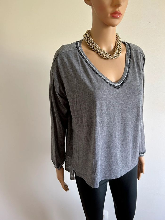 Pull léger gris et argenté pailleté à manches longues An’ge taille unique TBE - photo numéro 7
