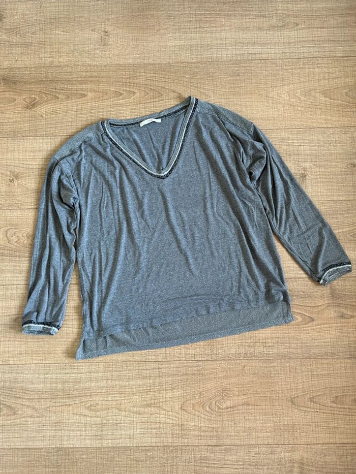 Pull léger gris et argenté pailleté à manches longues An’ge taille unique TBE - photo numéro 3