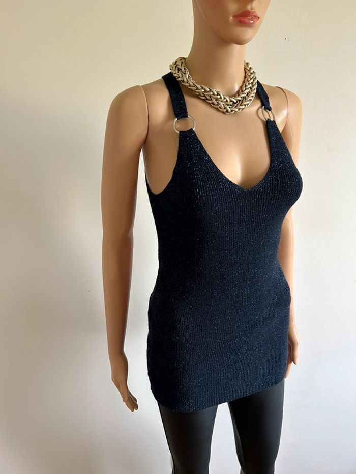 Débardeur bleu marine pailleté sans manches Morgan taille M jamais porté - photo numéro 12