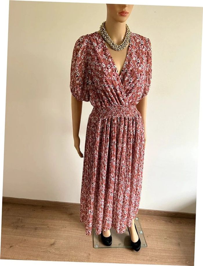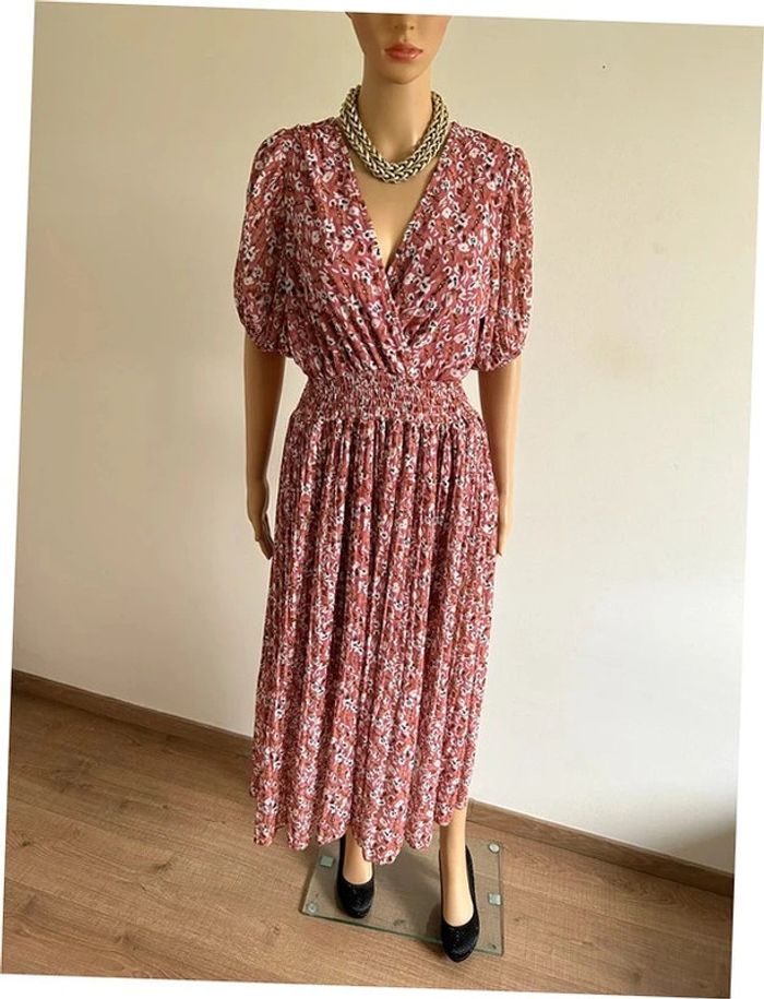 Jolie robe longue imprimée fleurie, à manches courtes. Taille unique qui convient jusqu’au 36/38. Portée plusieurs fois, en bon état. aisselle à aisselle 42 cms épaule à épaule 41 cms taille 29 cms à 52 cms longueur depuis épaule environ 123 cms La taille est extensible 65% polyester, 30% viscose et 5% elasthanne Le prix reste négociable dans la limite du raisonnable. Un petit cadeau dans le colis 🌸 (Boîte 50)