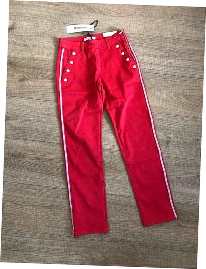 Pantalon slim rouge et argenté neuf Morgan taille 34 (valeur 55€) - photo numéro 1