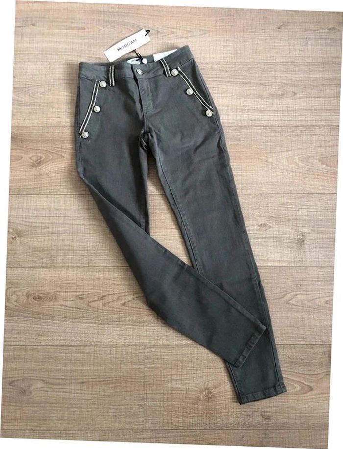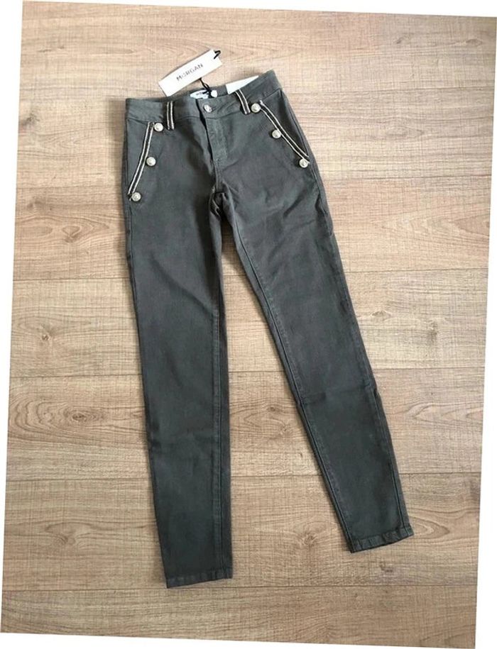 Pantalon skinny kaki et doré neuf Morgan taille 34 (valeur 65€) - photo numéro 1