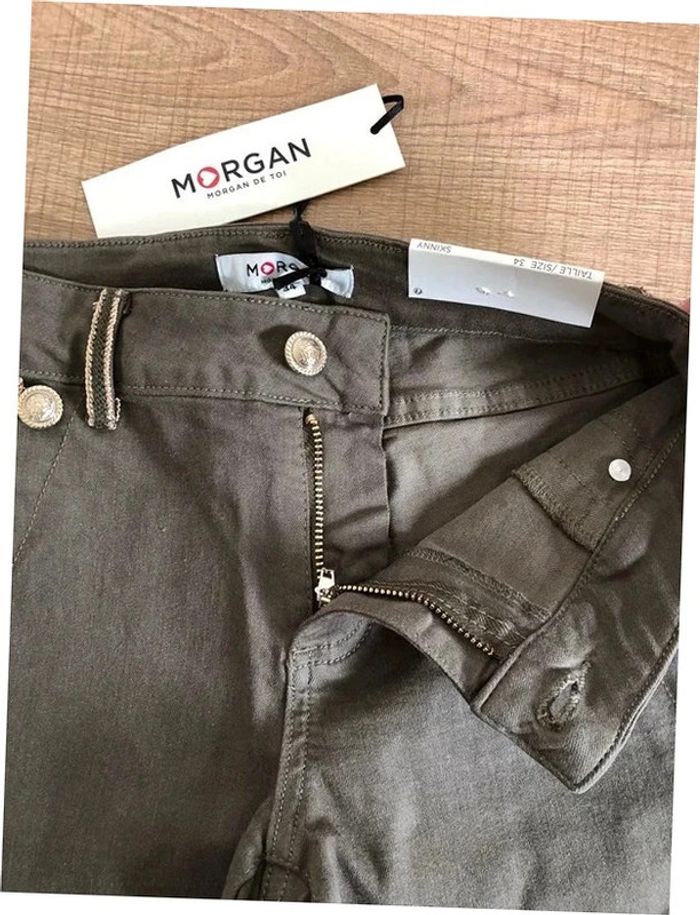 Pantalon skinny kaki et doré neuf Morgan taille 34 (valeur 65€) - photo numéro 2
