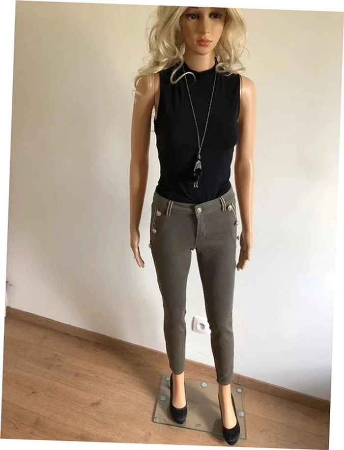 Pantalon skinny kaki et doré neuf Morgan taille 34 (valeur 65€) - photo numéro 19