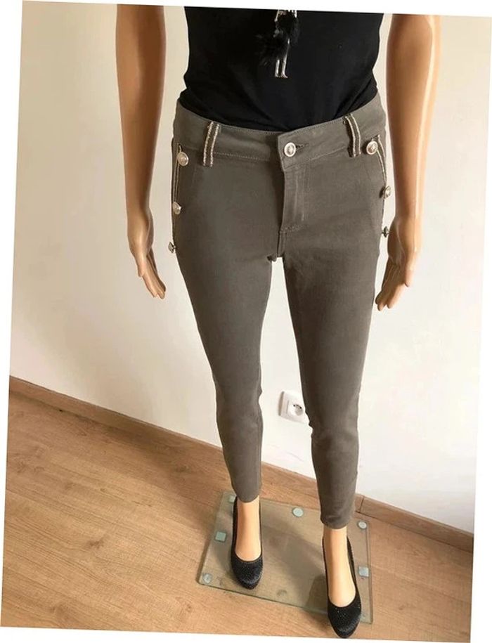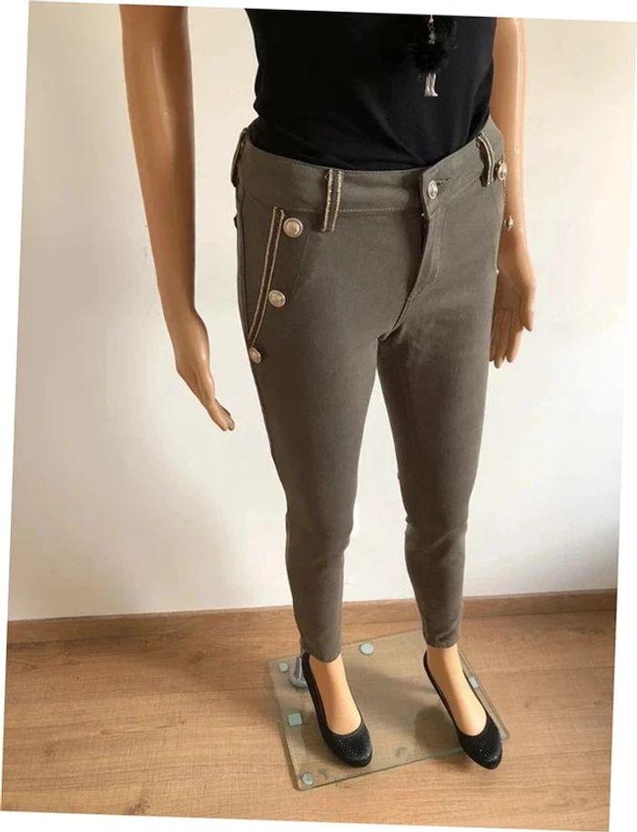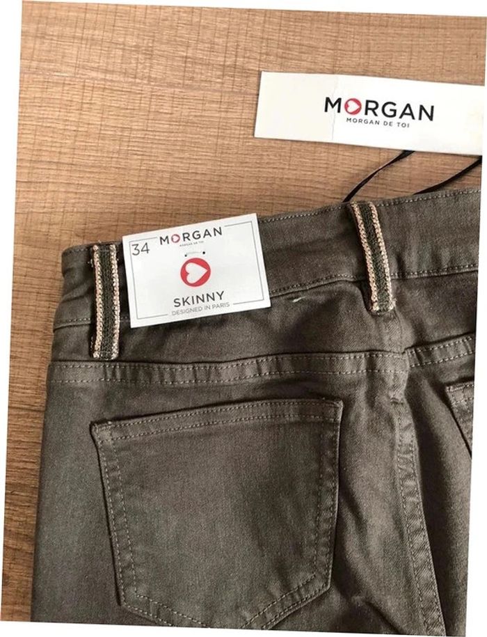 Pantalon skinny kaki et doré neuf Morgan taille 34 (valeur 65€) - photo numéro 3