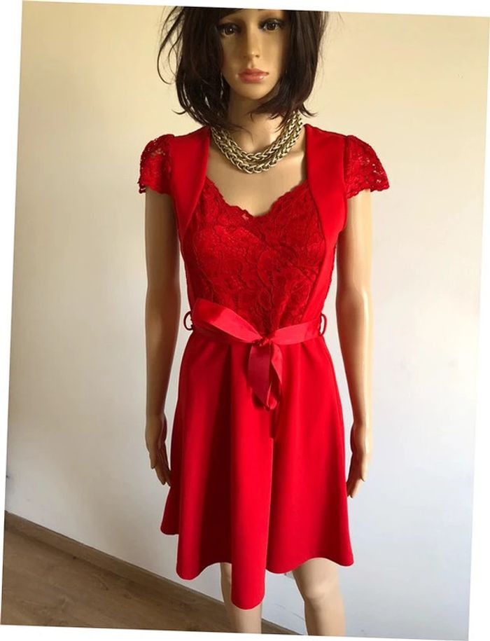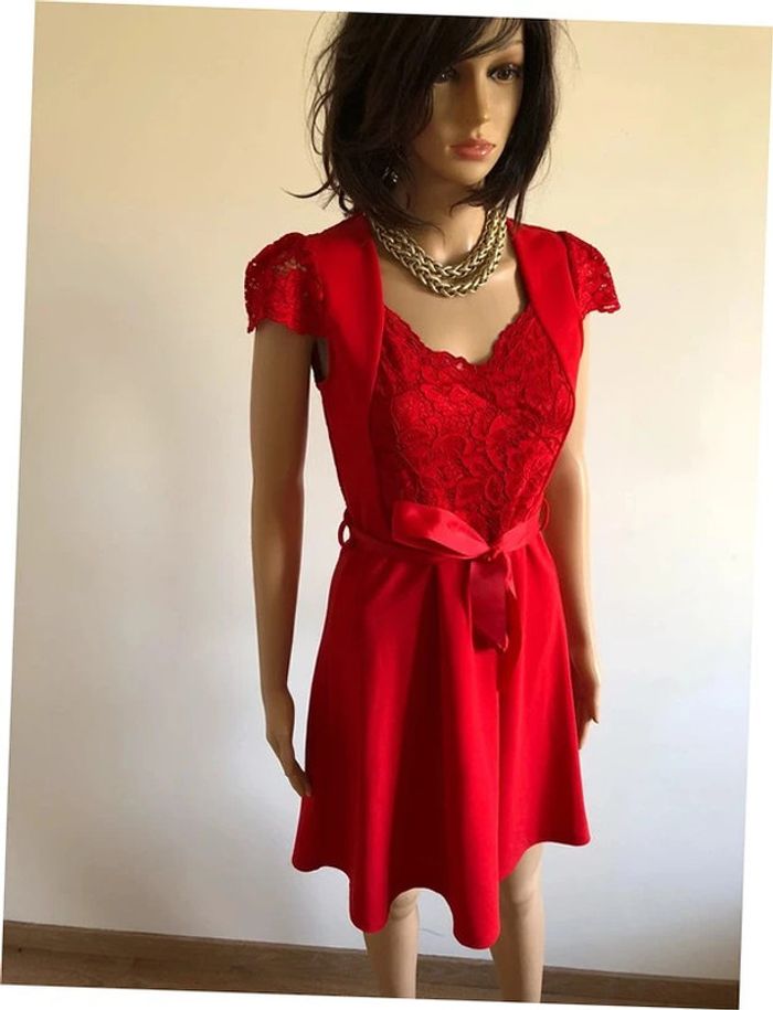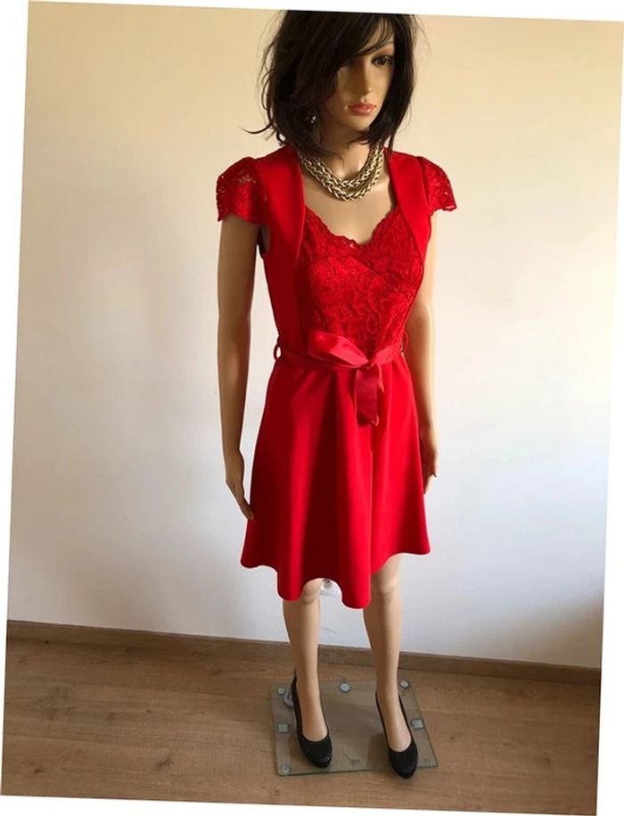 Robe rouge à manches courtes avec dentelle Morgan taille 36 jamais portée - photo numéro 1