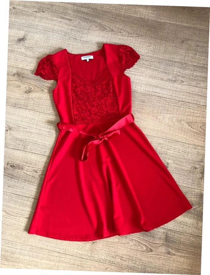 Robe rouge à manches courtes avec dentelle Morgan taille 36 jamais portée - photo numéro 14