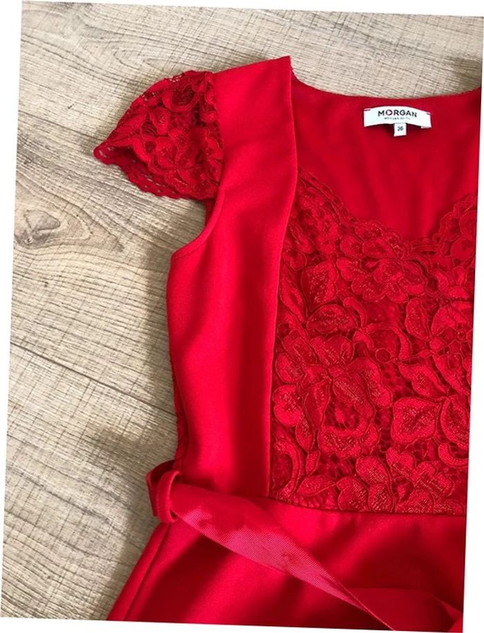 Robe rouge à manches courtes avec dentelle Morgan taille 36 jamais portée - photo numéro 2