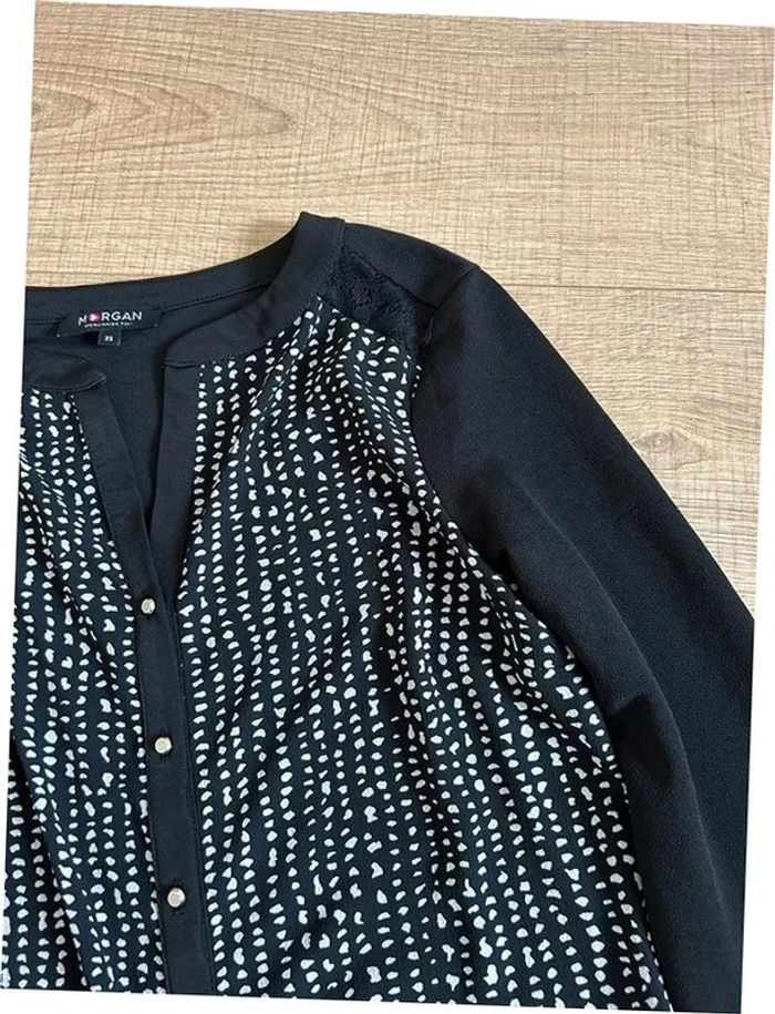 Blouse noire et blanche à manches longues Morgan taille XS excellent état - photo numéro 3