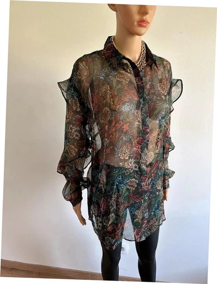 Blouse imprimée transparente neuve à manches longues Morgan taille 38 (valeur 60€) - photo numéro 1