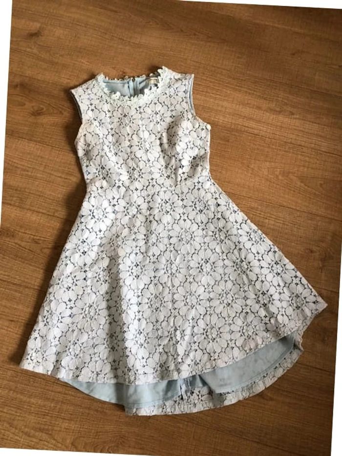 Robe bleue claire en dentelle sans manches Molly Bracken taille 36 TBE - photo numéro 13