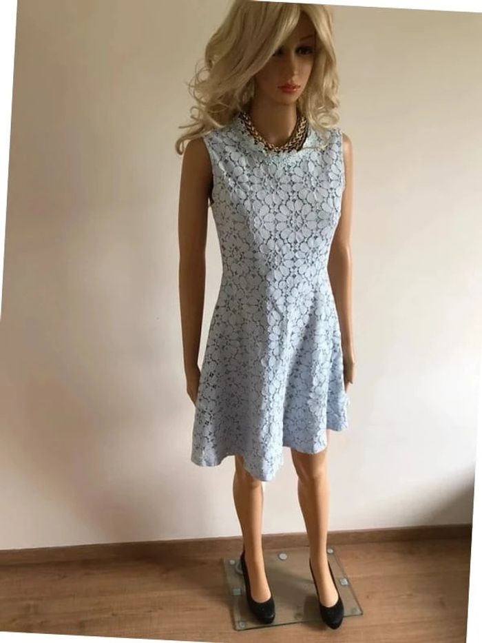 Robe bleue claire en dentelle sans manches Molly Bracken taille 36 TBE - photo numéro 2
