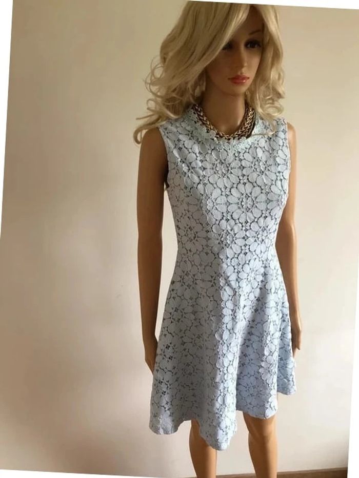 Robe bleue claire en dentelle sans manches Molly Bracken taille 36 TBE - photo numéro 1