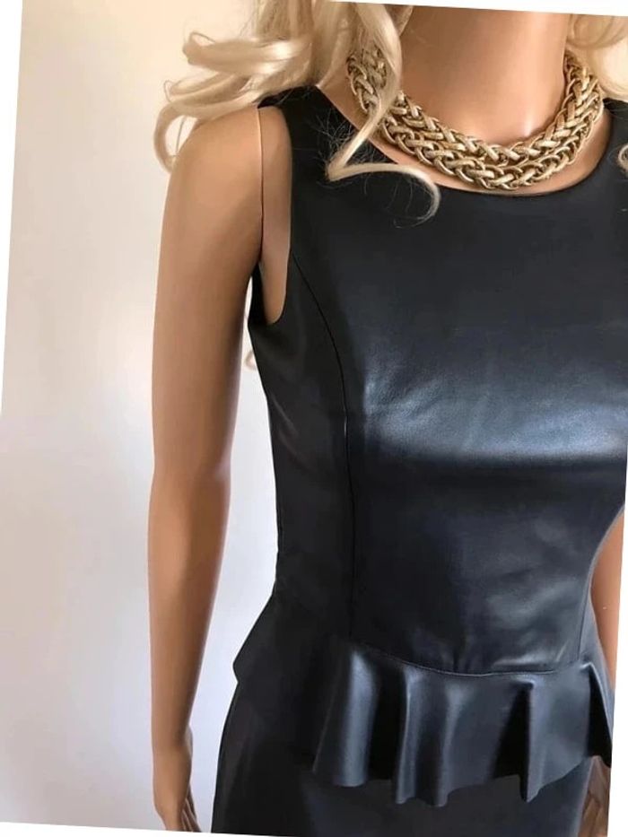 Magnifique robe noire en simili cuir, sans manches, de marque Morgan. Taille 34. Fermeture dans le dos. Elle est neuve avec étiquette (valeur 70€). aisselle à aisselle 40 cms taille 33 cms longueur depuis épaule 84 cms 100% synthétique Le prix reste négociable dans la limite du raisonnable. Un petit cadeau dans le colis.