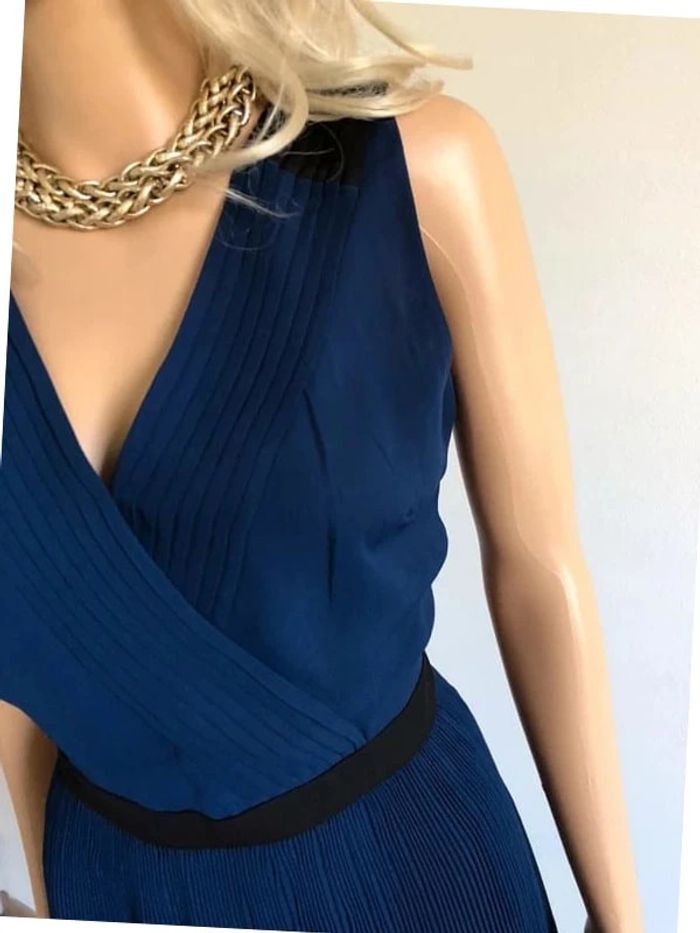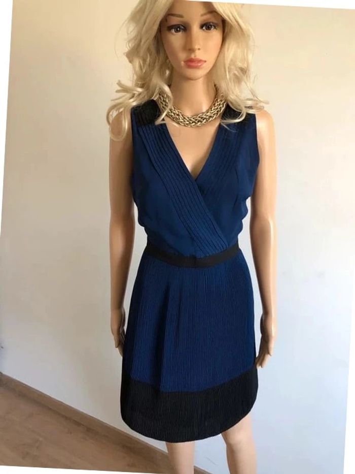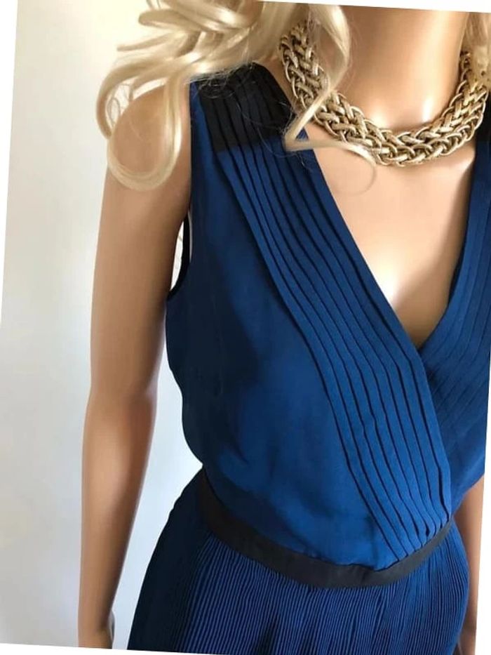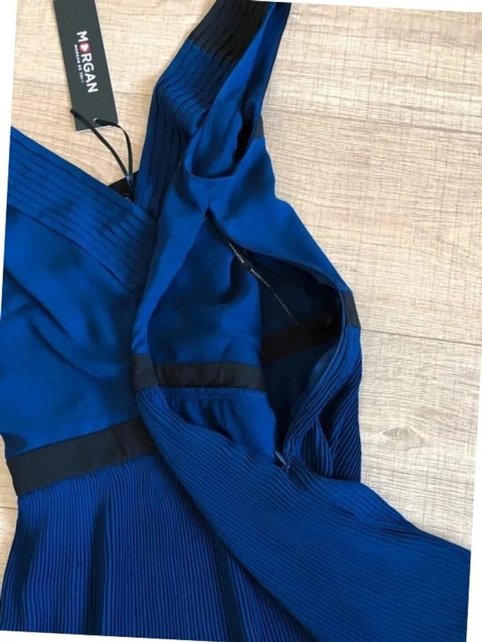Magnifique robe bleue et noire sans manches, avec bas plissé, de marque Morgan. Fermeture sur le côté. Taille 40. Elle est neuve avec étiquette (valeur 69€). aisselle à aisselle 46 cms taille 39 cms longueur depuis épaule 90 cms 100% polyester Le prix reste négociable dans la limite du raisonnable. Un petit cadeau dans le colis. (Boîte 19)