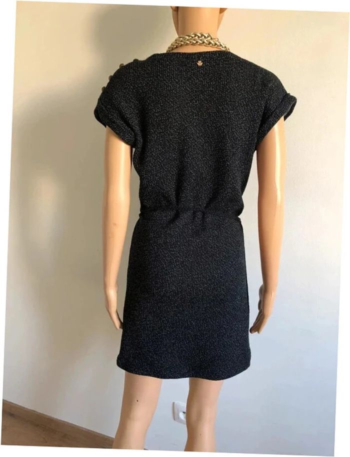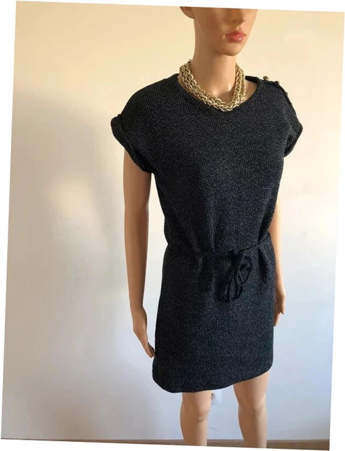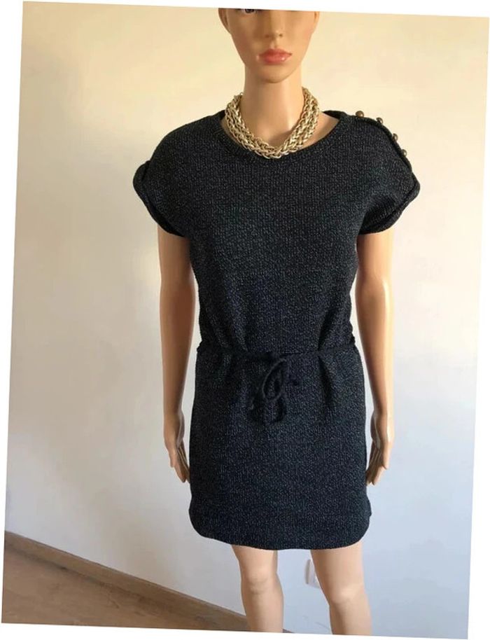 Jolie robe d'hiver bleue marine chamarrée, a manches courtes, de marque Bonobo. Cordon à nouer à la taille. Taille S. Jamais portée car trop juste pour moi, état neuf. Dimensions à plat : niveau aisselles 47 cms et plus niveau taille 39 cms et plus longueur depuis épaule 87 cms La matière est extensible Composition : 64% coton et 36% polyester Le prix peut être négocié raisonnablement. Une petite surprise offerte 🌸