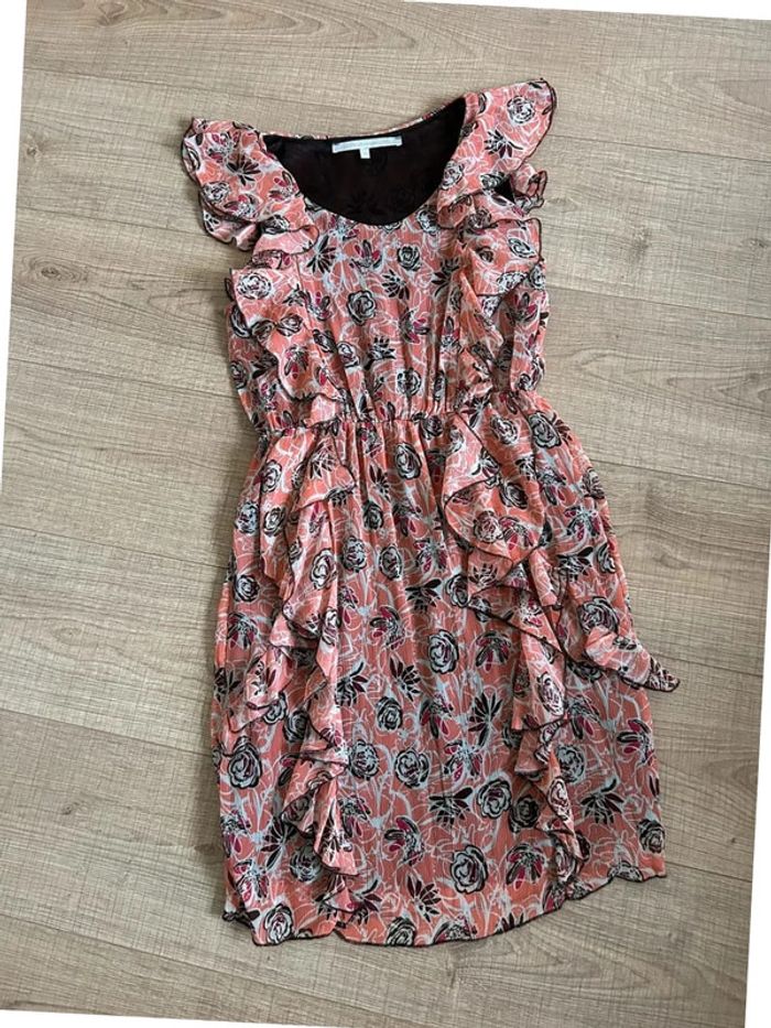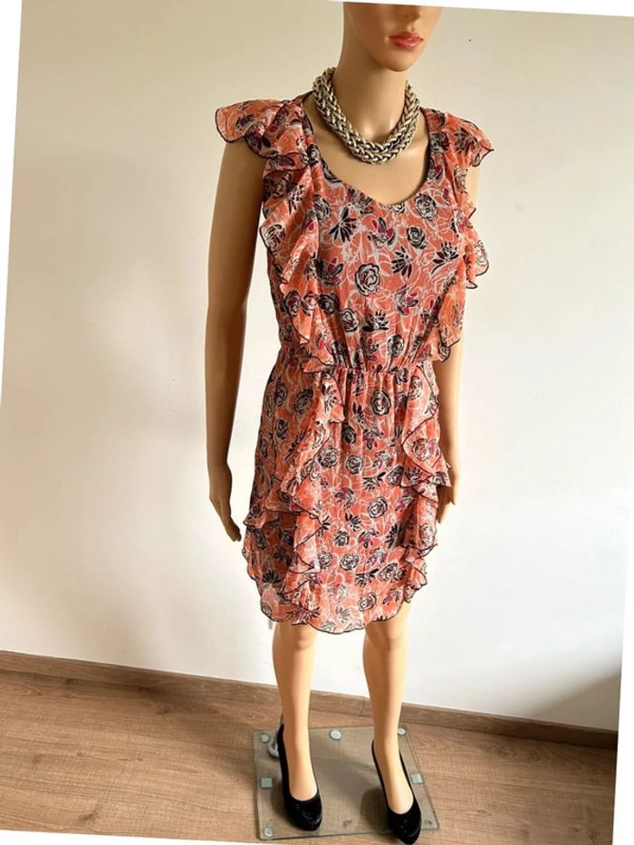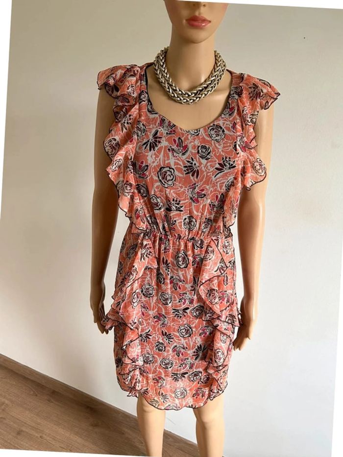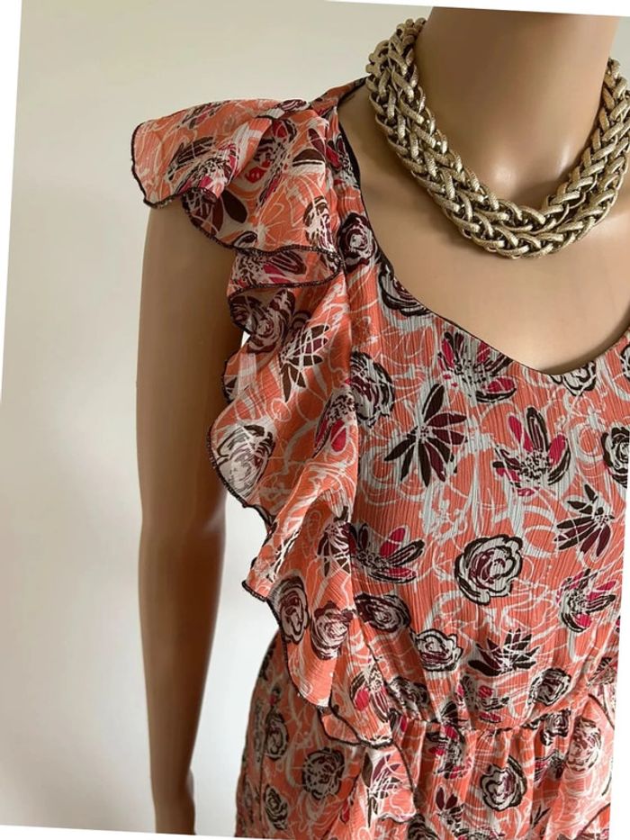 Magnifique robe imprimée sans manches, avec volants, de marque La Fée Maraboutée. Taille 38. Jamais portée, état neuf. aisselle à aisselle 42 cms taille 33 cms à 49 cms longueur depuis épaule 90 cms La taille est extensible 100% nylon Le prix reste négociable dans la limite du raisonnable. Un petit cadeau dans le colis 🌸 (Boîte 26)