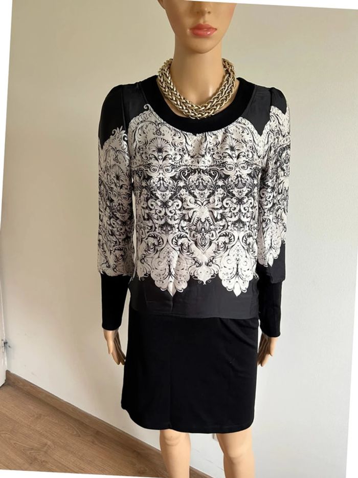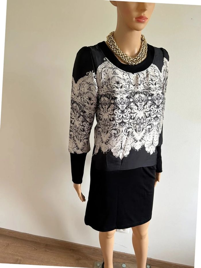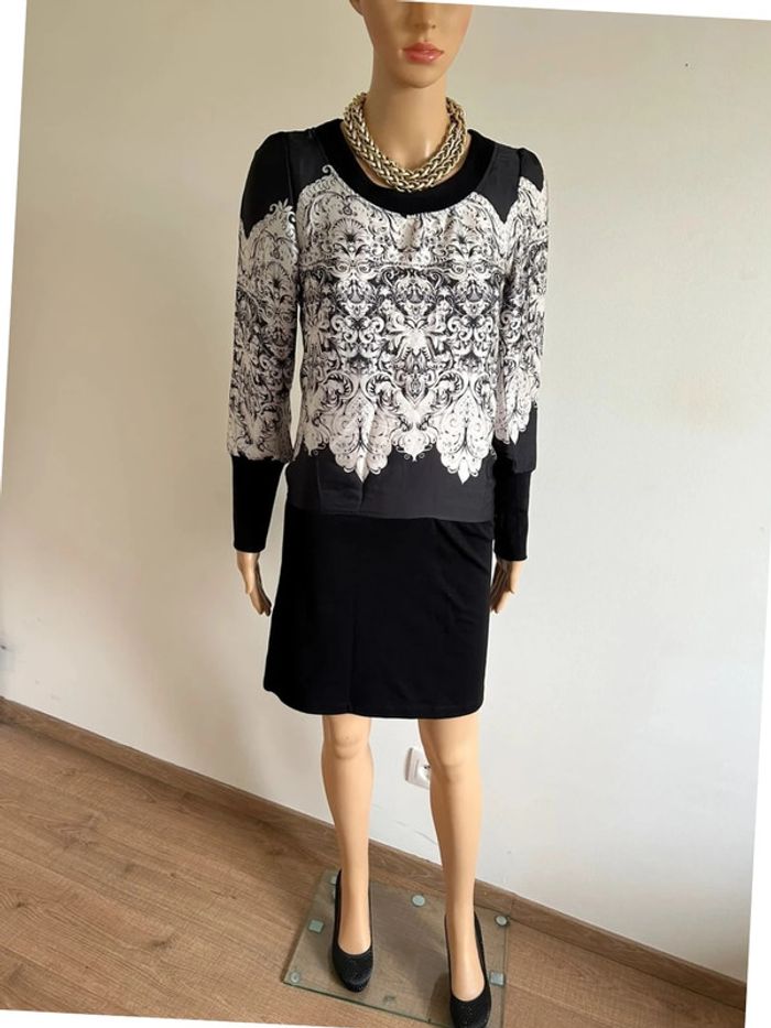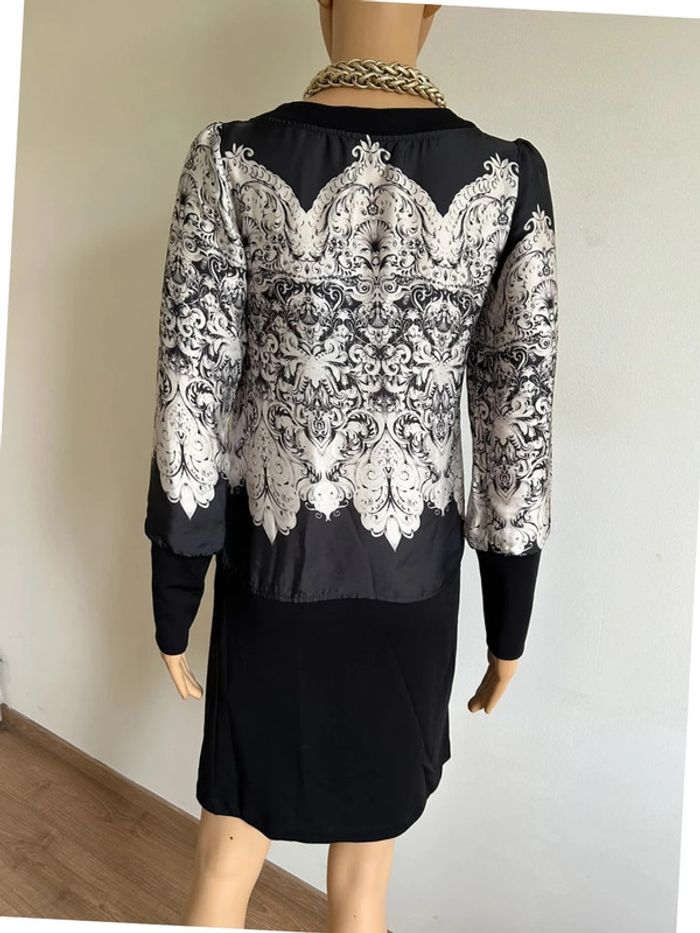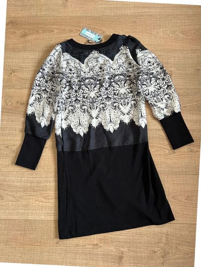Jolie robe noire et blanche imprimée, à manches longues, de marque La Fée Maraboutée. Taille 36. Elle est neuve avec étiquette (valeur 105€). aisselle à aisselle 42 cms épaule à épaule 35 cms longueur manches 59 cms taille 42 cms longueur depuis épaule 87 cms 100% polyester Le prix reste négociable dans la limite du raisonnable. Un petit cadeau dans le colis 🌸 (Boîte 40)