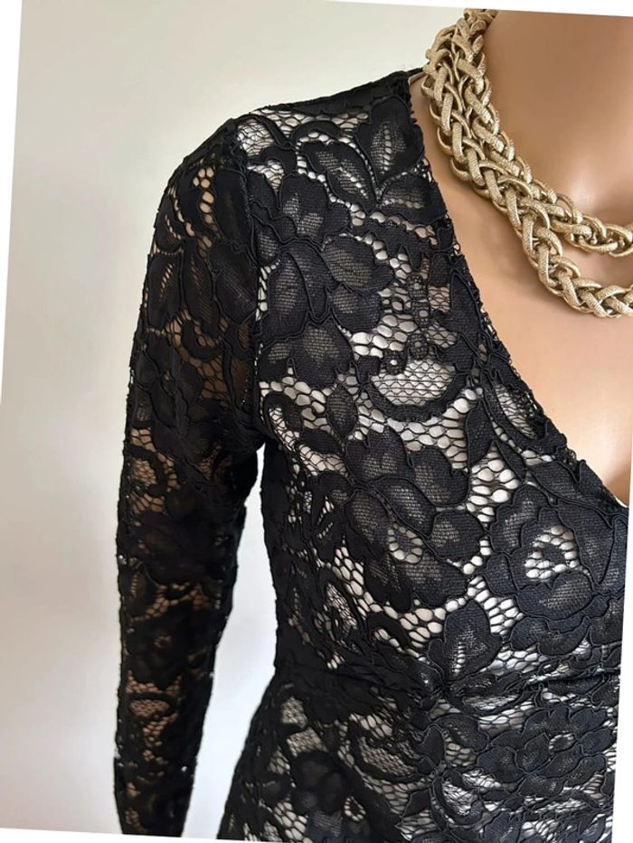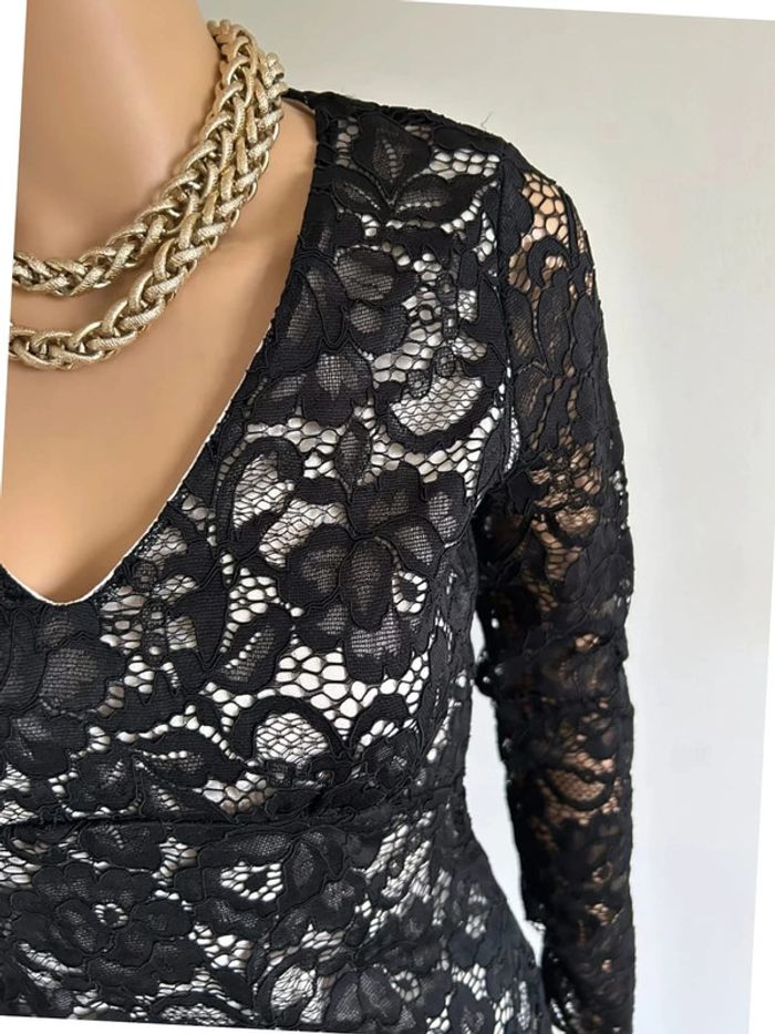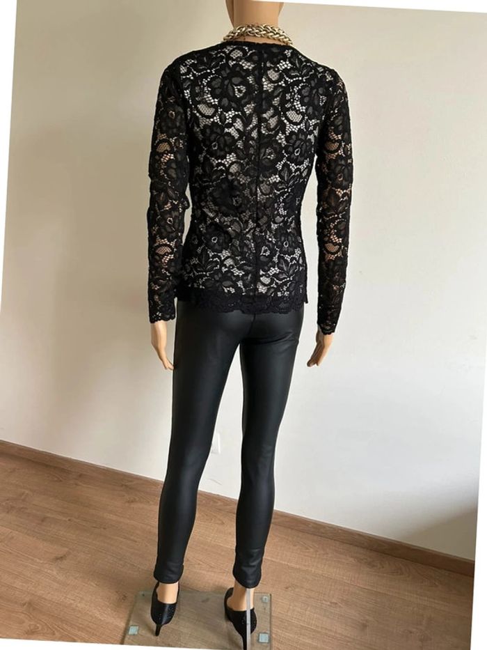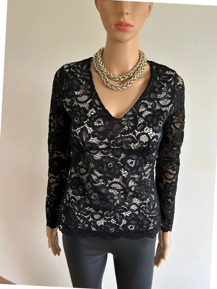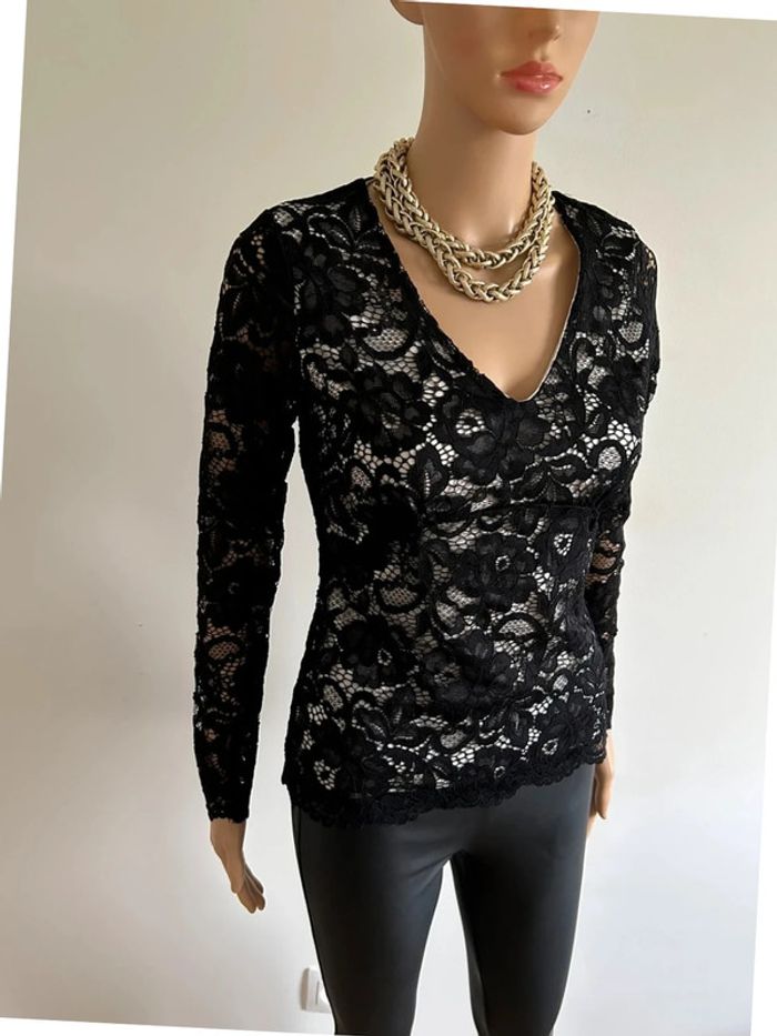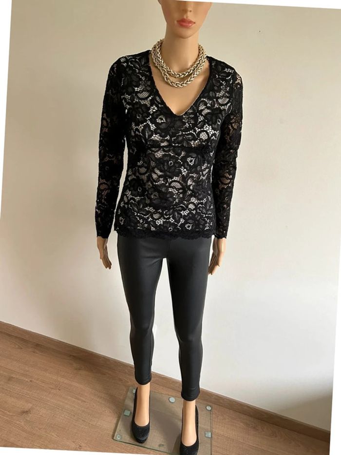 Magnifique haut noir en dentelle à manches longues, avec doublure beige, de marque Morgan. Taille XS. Jamais porté, état neuf. aisselle à aisselle 41 cms et plus épaule à épaule 36 cms et plus longueur manches 59 cms taille 35 cms et plus longueur depuis épaule 58 cms Le tissu est extensible Étiquette intérieure de composition coupée Le prix reste négociable dans la limite du raisonnable. Un petit cadeau dans le colis 🌸 (Boîte 4)