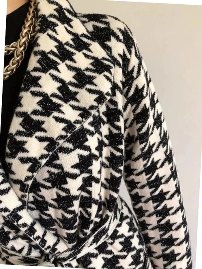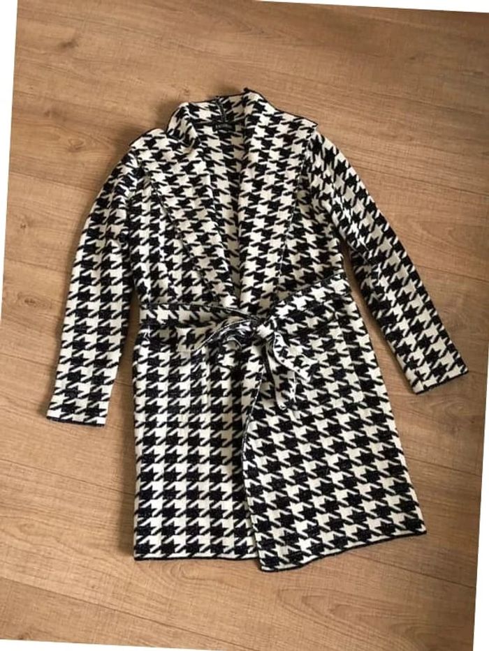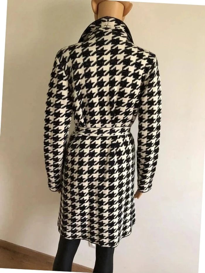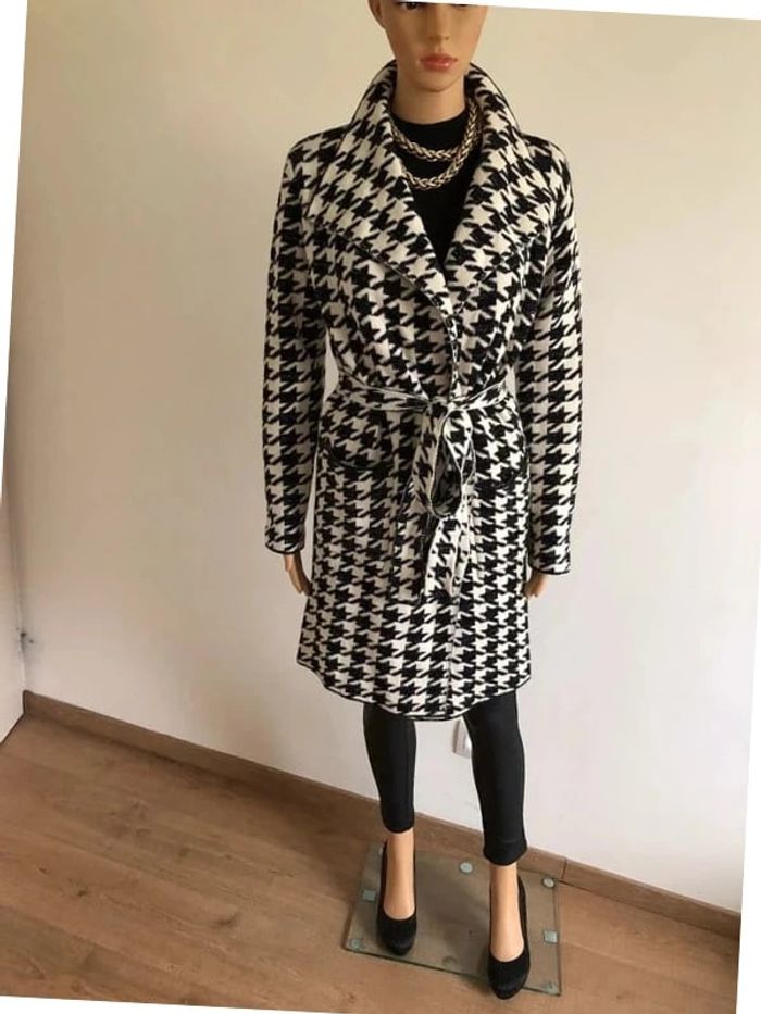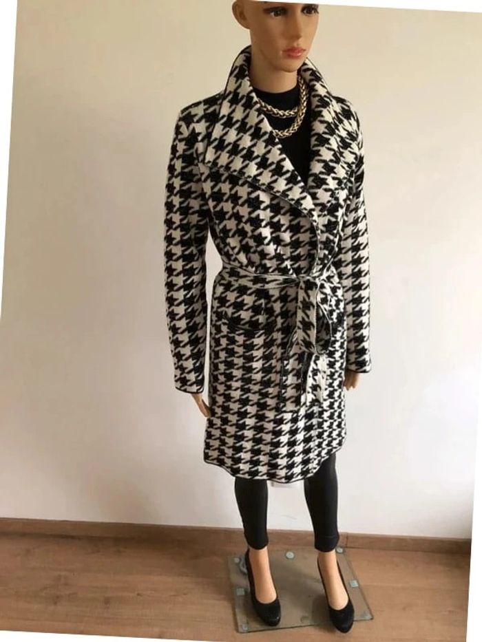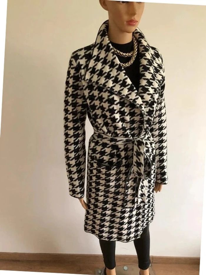 Magnifique manteau blanc et noir pailleté pour femme, de marque Fashion. Fermeture avec une ceinture à nouer autour de la taille. Matiere très douce. Taille unique qui convient jusqu’au 40. Jamais porté état neuf. aisselle à aisselle 50 cms et plus épaule à épaule 40 cms et plus longueur manches 59 cms taille 49 cms et plus longueur depuis épaule 89 cms Le tissu est extensible Pas d’étiquette intérieure de composition