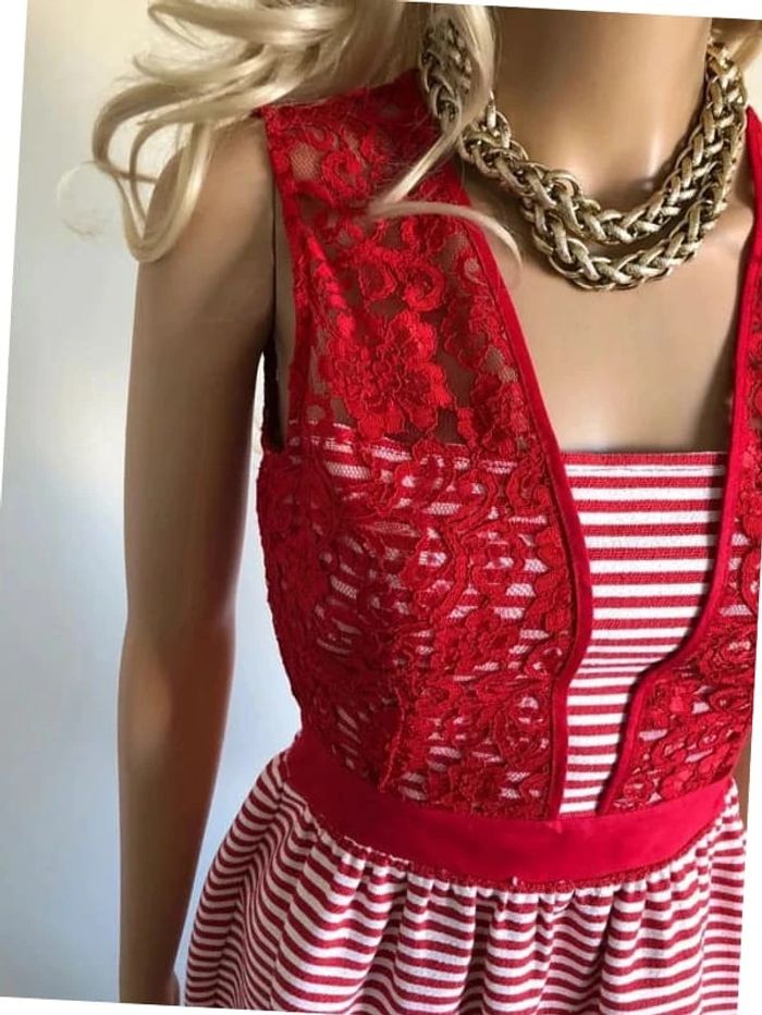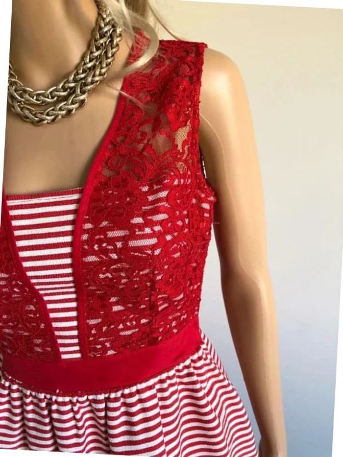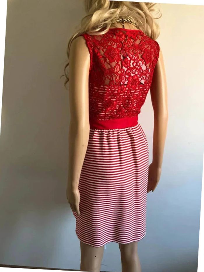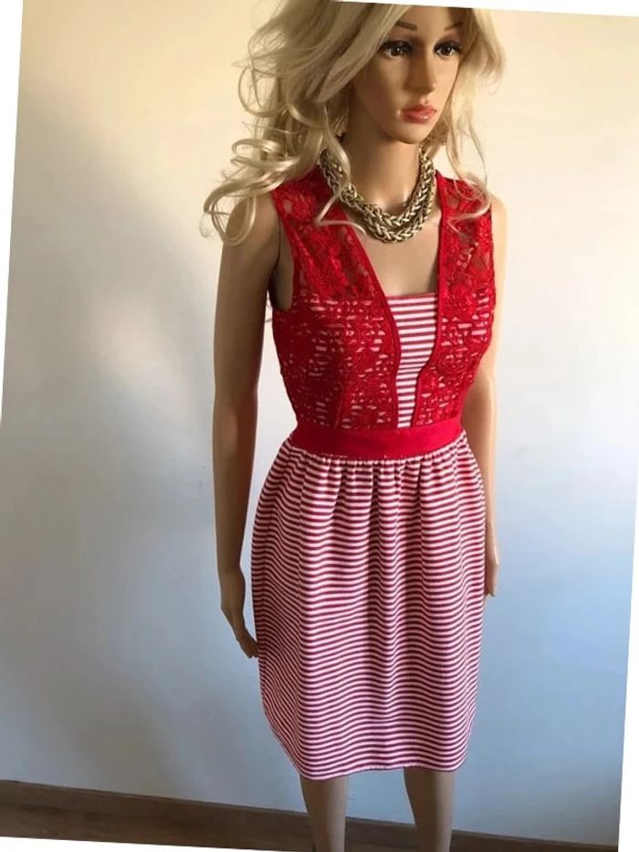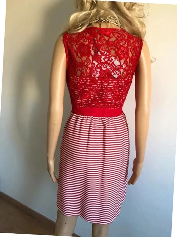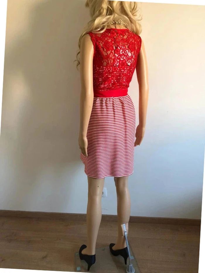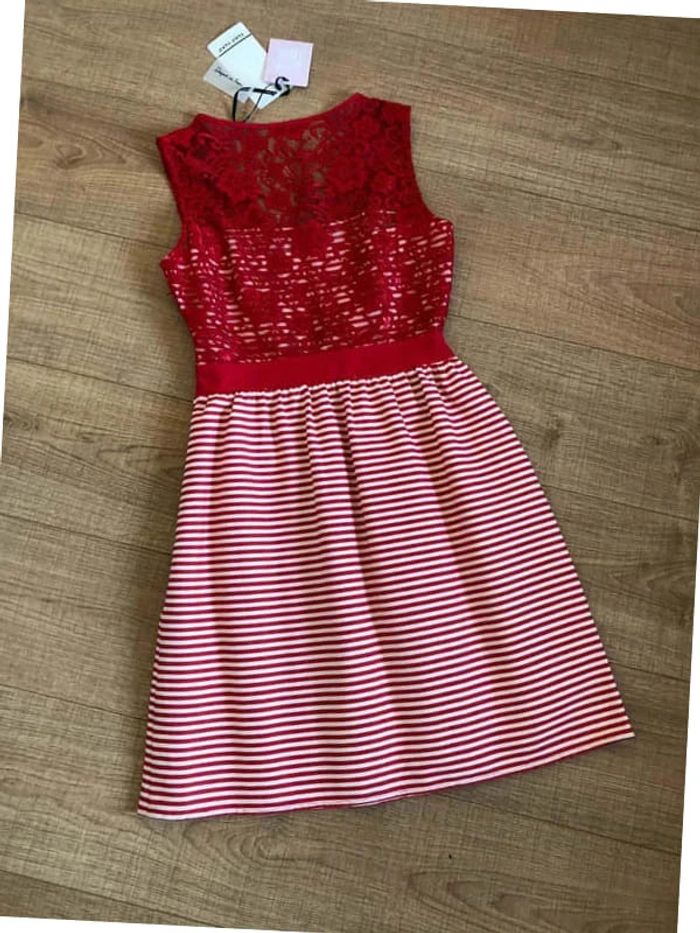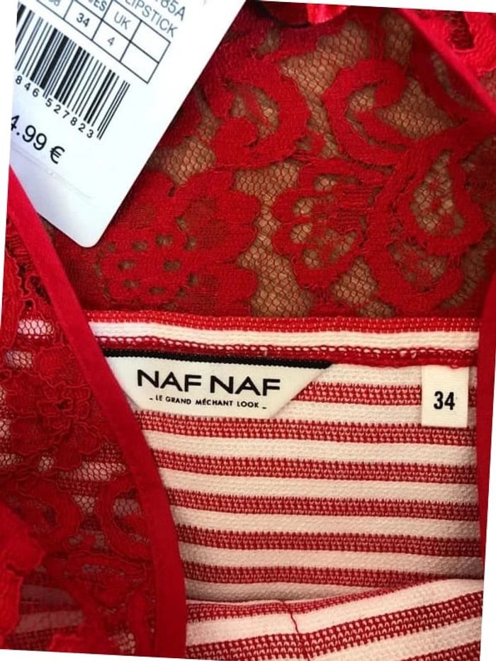 Magnifique robe rouge et blanche, sans manches, avec dentelle sur le haut, de marque Naf Naf. Taille 34 qui peut convenir pour un petit 36. Fermeture sur le côté. Elle est neuve avec étiquette (valeur 65€). aisselle à aisselle 41 cms taille 33 cms longueur depuis épaule 88 cms 85% coton et 15% polyester Le prix reste négociable dans la limite du raisonnable. Un petit cadeau dans le colis 🌸