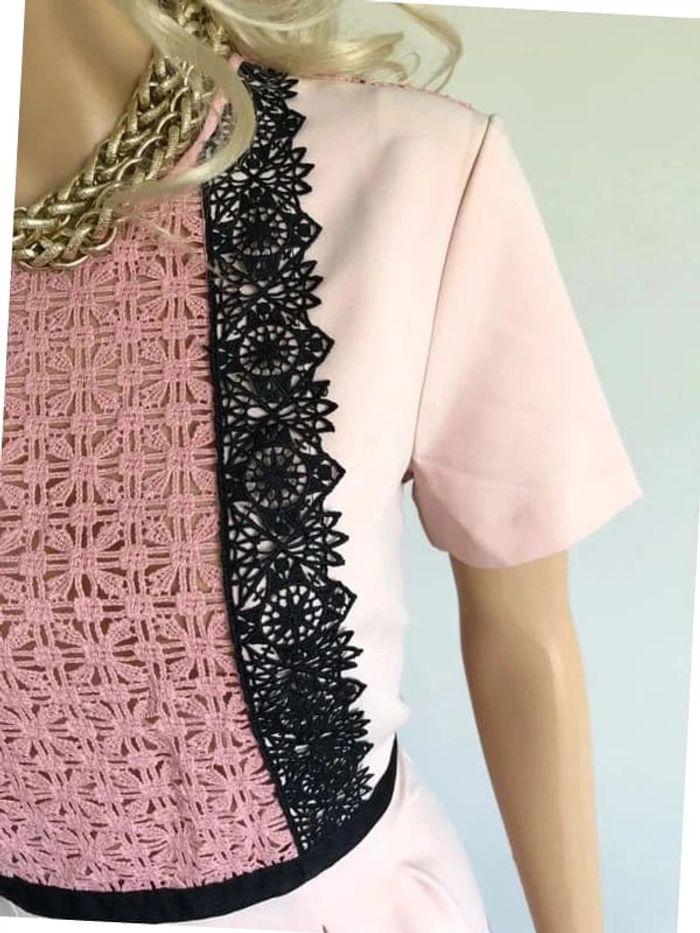 Magnifique robe rose sans manches, avec dentelle sur le devant, de marque Morgan. Fermeture dans le dos. Taille 40. Elle est neuve avec étiquette (valeur 75€). aisselle à aisselle 45 cms épaule à épaule 40 cms taille 39 cms longueur depuis épaule 90 cms 93% polyester et 7% elasthanne Le prix reste négociable dans la limite du raisonnable. Un petit cadeau dans le colis 🌸