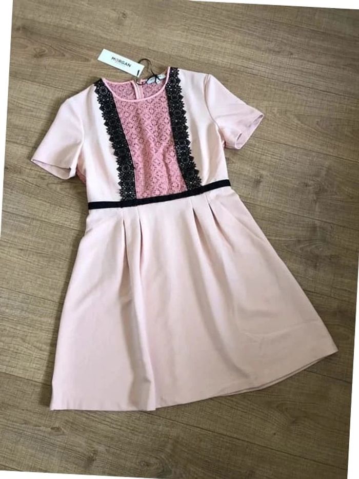 Robe rose et noire neuve à manches courtes Morgan taille 40 (valeur 75€) - photo numéro 1