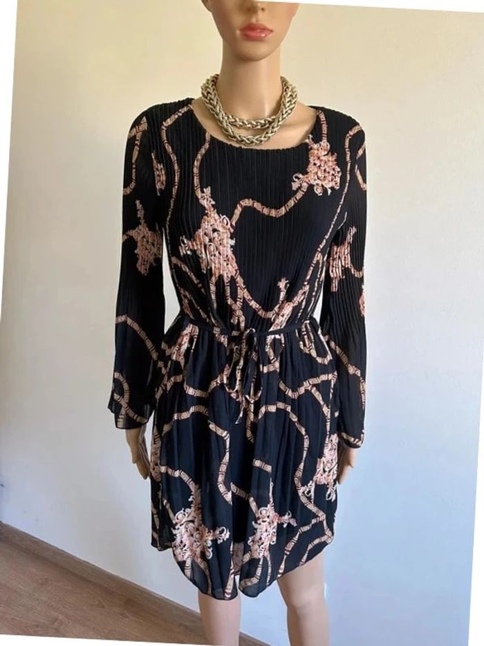 Magnifique robe plissée noire et beige, à manches longues, de marque LolaLiza. Taille 36. Elle est neuve avec étiquette (valeur 50€). aisselle à aisselle 42 cms à 56 cms épaule à épaule 35 cms à 46 cms longueur manches 57 cms taille 39 cms et plus longueur depuis épaule 88 cms Le tissu est extensible 97% viscose et 3% elasthanne Le prix reste négociable dans la limite du raisonnable. Un petit cadeau dans le colis 🌸 (Boîte 38)
