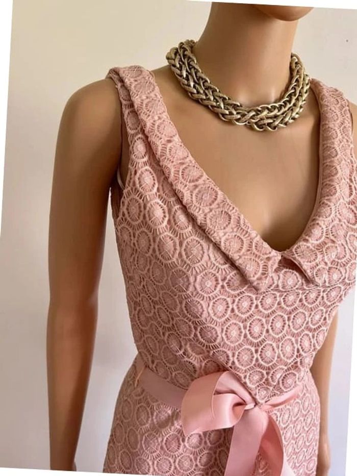 Robe rose en dentelle sans manches Jacqueline Riu taille 38 jamais portée - photo numéro 6