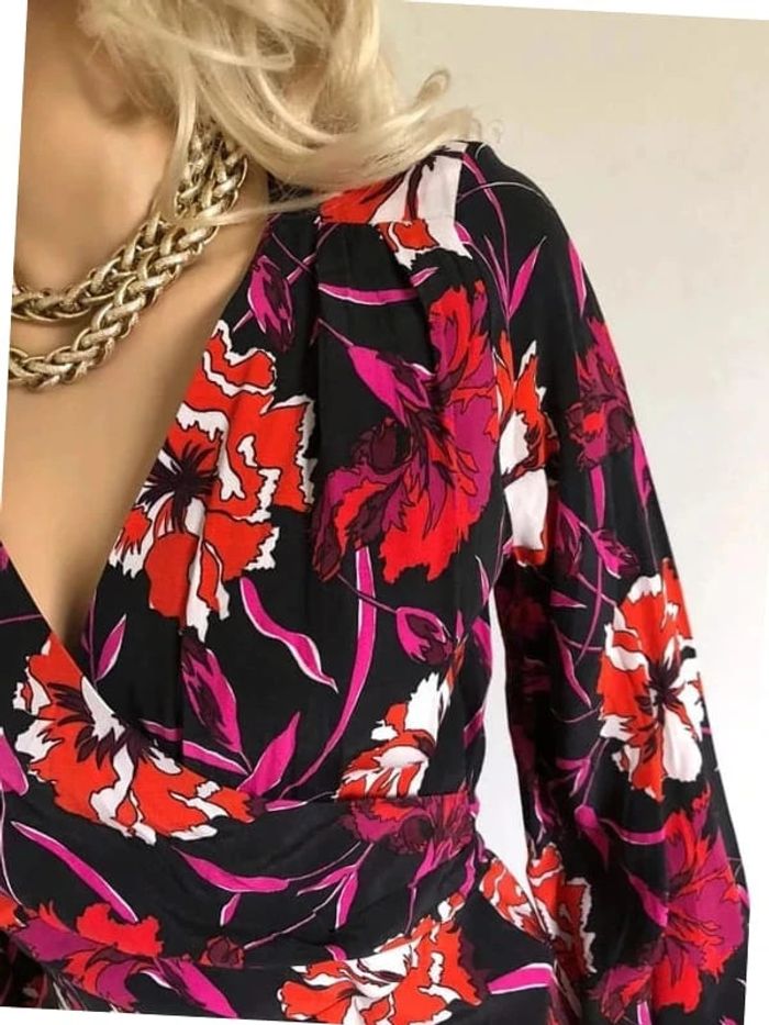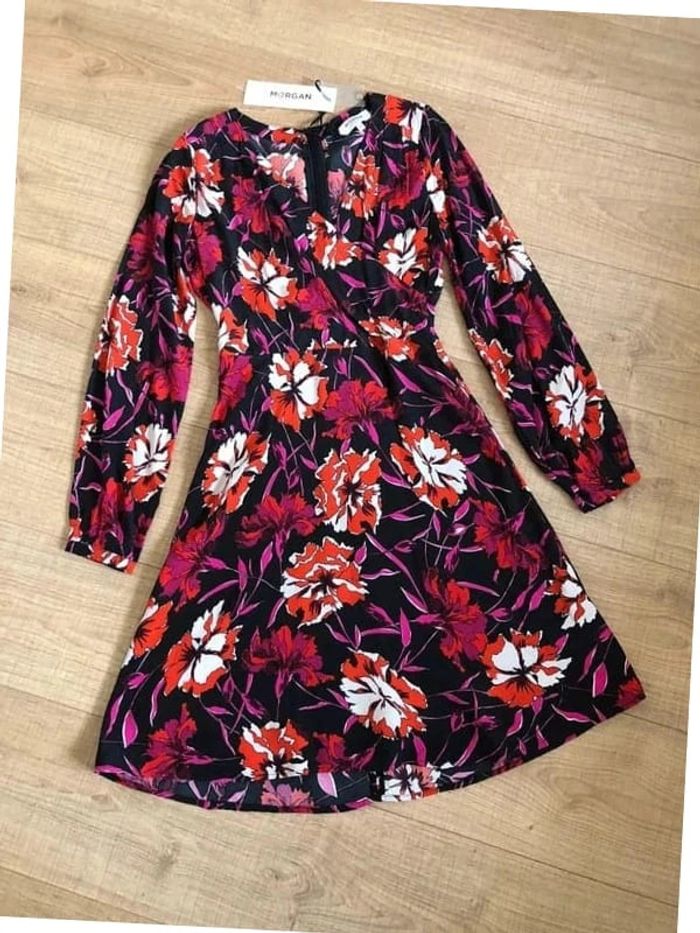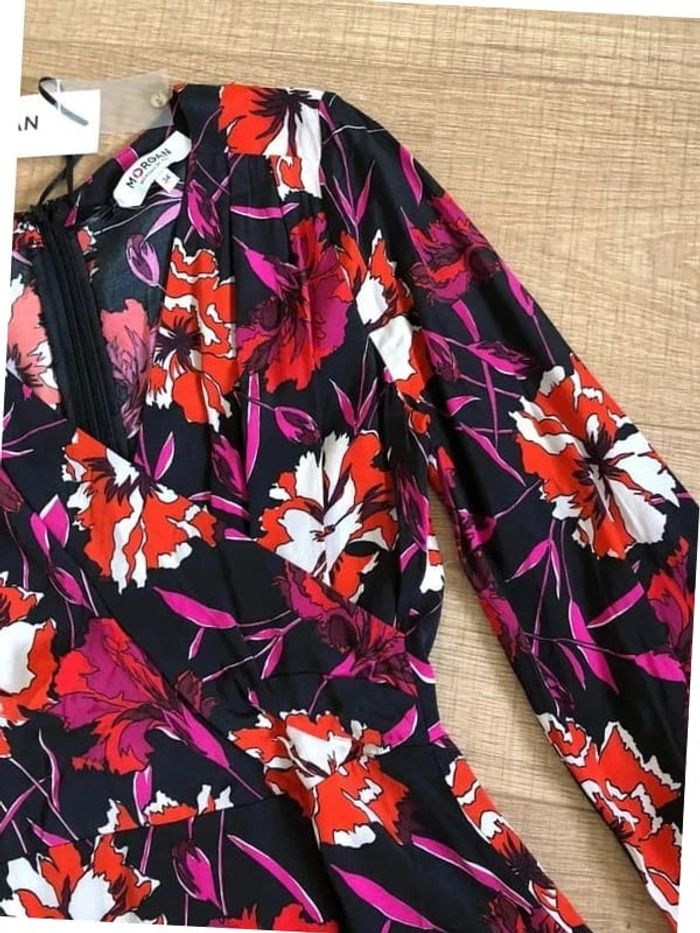 Magnifique robe imprimée fleurie à manches longues, de marque Morgan. Fermeture dans le dos. Taille 34. Elle est neuve avec étiquette (valeur 75€). aisselle à aisselle 43 cms épaule à épaule 35 cms longueur manches 59 cms taille 34 cms longueur depuis épaule 92 cms 100% viscose Le prix reste négociable dans la limite du raisonnable. Un petit cadeau dans le colis.