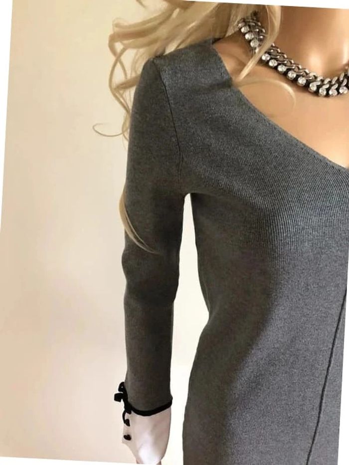 Robe pull grise et blanche neuve à manches longues Morgan taille XS (valeur 65€) - photo numéro 12