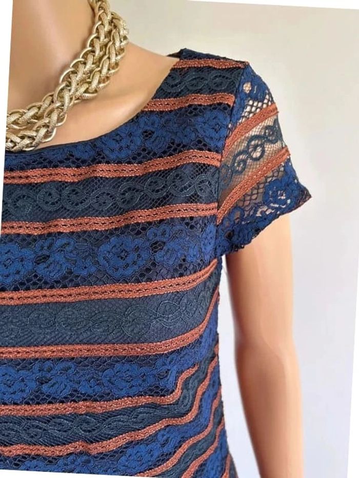 Robe bleue marine et orange en dentelle à manches courtes LolaLiza taille 38 jamais portée - photo numéro 14