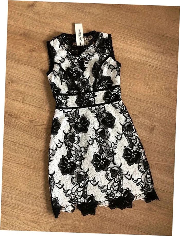 Robe blanche et noire neuve en dentelle sans manches Morgan taille 34 (valeur 95€) - photo numéro 1