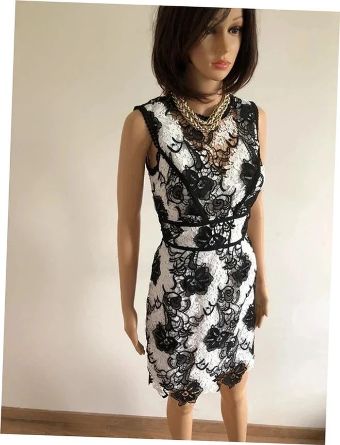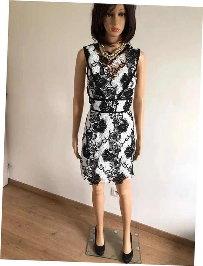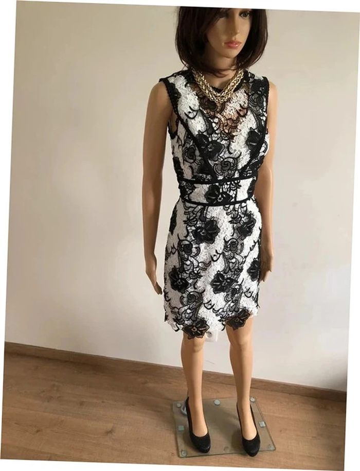 Robe blanche et noire neuve en dentelle sans manches Morgan taille 34 (valeur 95€) - photo numéro 4