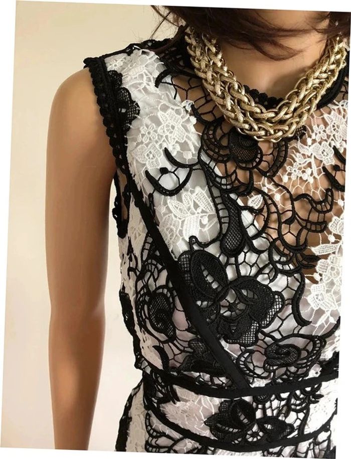 Robe blanche et noire neuve en dentelle sans manches Morgan taille 34 (valeur 95€) - photo numéro 16