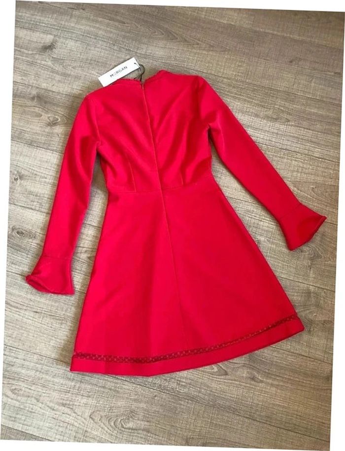 Robe rouge corail neuve à manches longues Morgan taille 34 - photo numéro 5