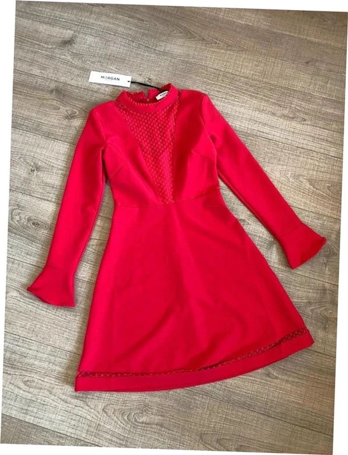 Robe rouge corail neuve à manches longues Morgan taille 34 - photo numéro 1