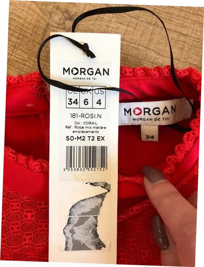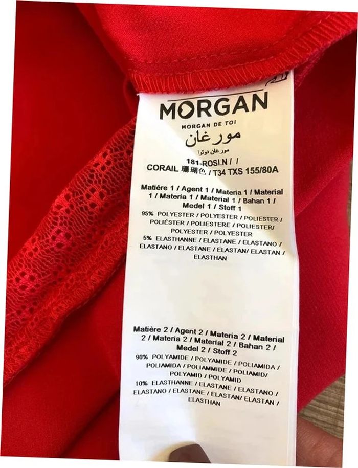Robe rouge corail neuve à manches longues Morgan taille 34 - photo numéro 13