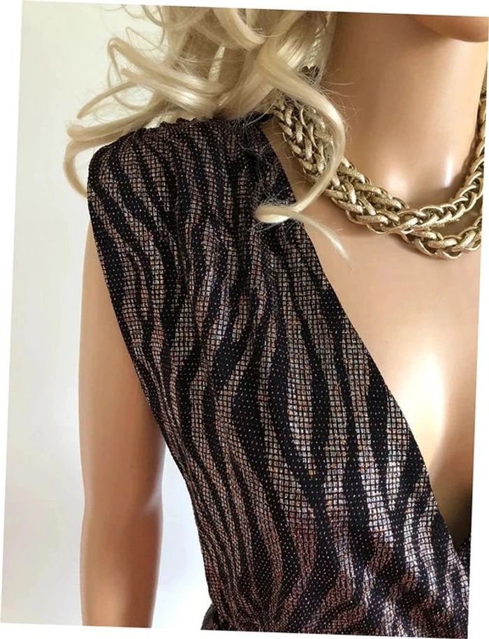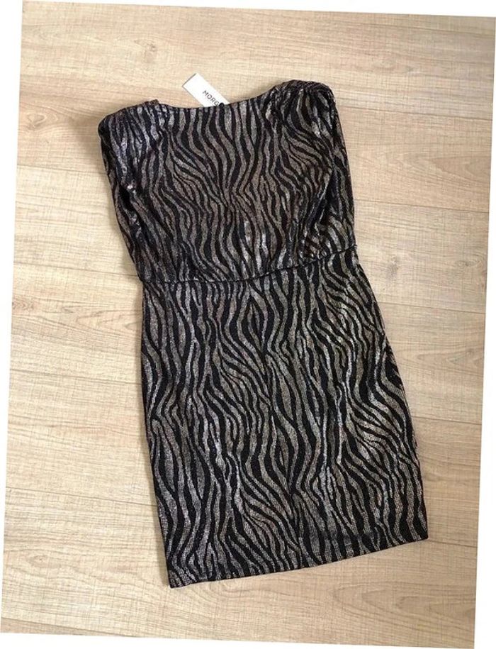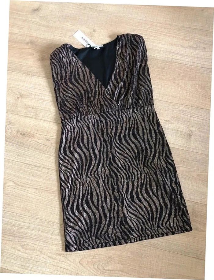 Magnifique robe pailletée imprimée zébrée, sans manches, de marque Morgan. Taille 40. Elle est neuve avec étiquette (valeur 55€). aisselle à aisselle 48 cms et plus épaule à épaule 40 cms et plus taille 40 cms et plus longueur depuis épaule 85 cms Le tissu est extensible 86% polyamide, 9% fil métallisé et 5% elasthanne Le prix reste négociable dans la limite du raisonnable. Un petit cadeau dans le colis.