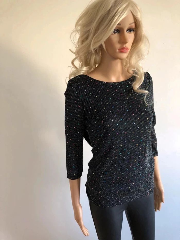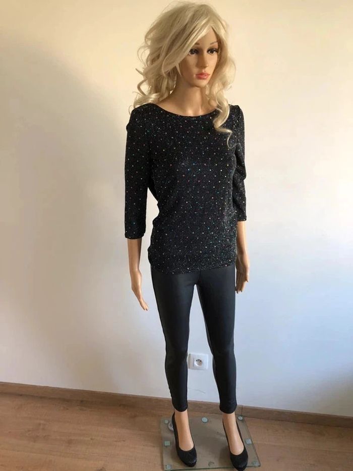 Haut noir et brillant pailleté neuf Morgan taille S (valeur 45€) - photo numéro 12