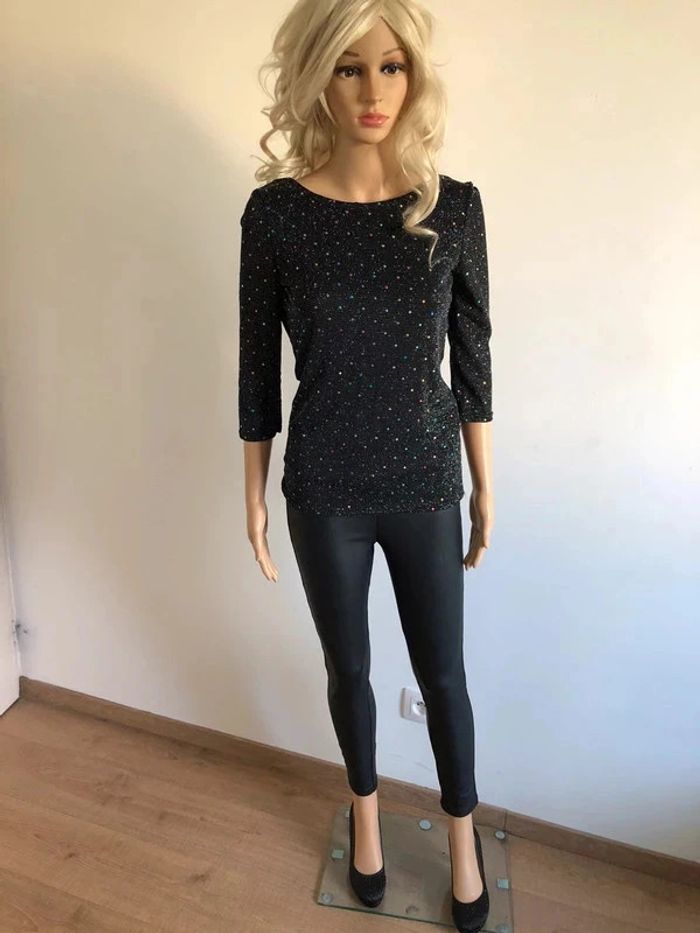 Haut noir et brillant pailleté neuf Morgan taille S (valeur 45€) - photo numéro 11