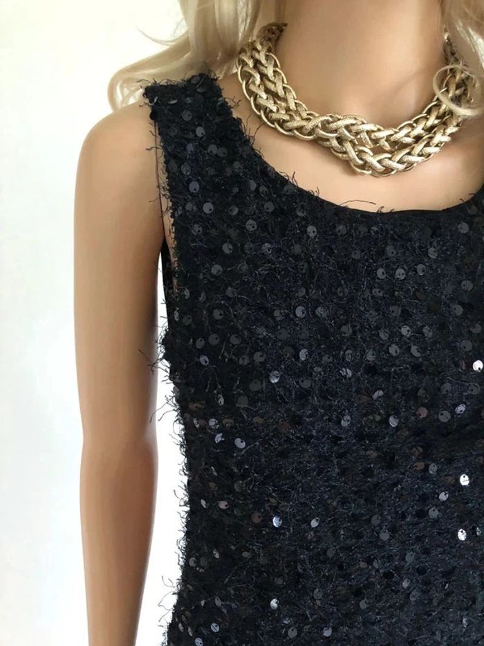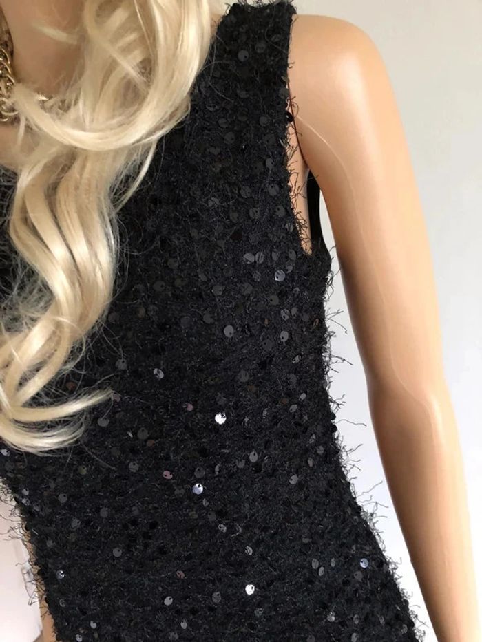 Magnifique robe noire sans manches, avec sequins sur le devant et ouverte dans le dos, de marque LolaLiza. Taille française 38. Jamais portée état neuf. aisselle à aisselle 41 cms et plus taille 37 cms et plus longueur depuis épaule 87 cms Le tissu est extensible 95% polyester et 5% elasthanne Le prix reste négociable dans la limite du raisonnable. Un petit cadeau dans le colis 🌸