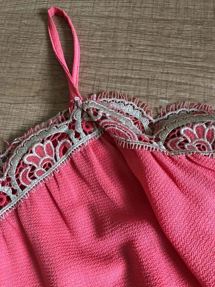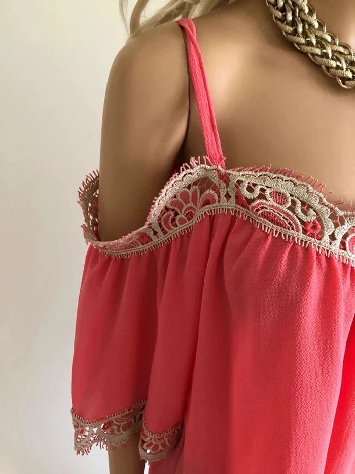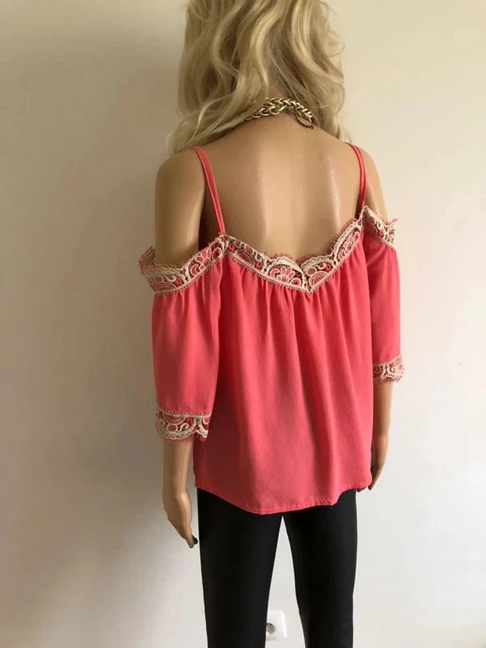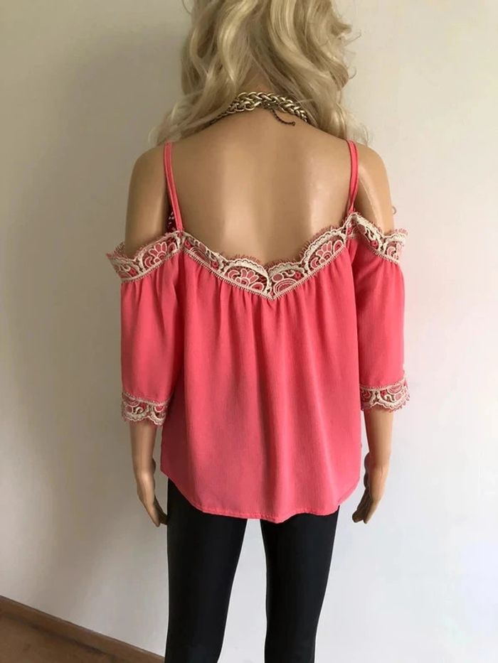 Top rose à épaules dénudées avec dentelle taille unique jamais porté - photo numéro 13