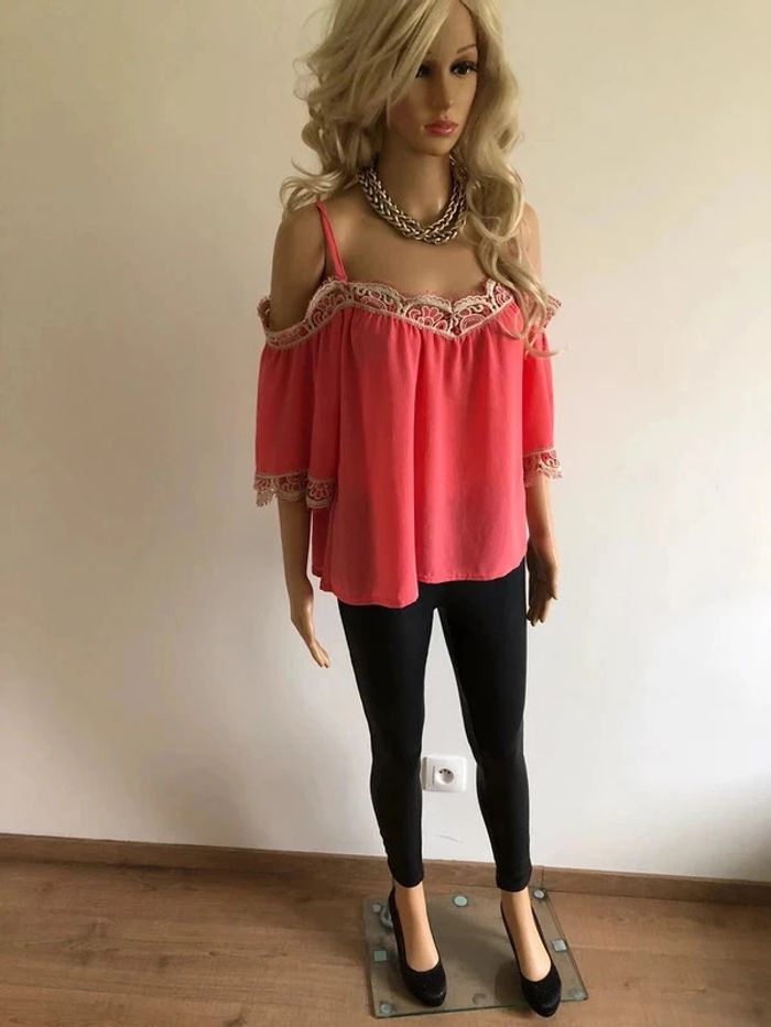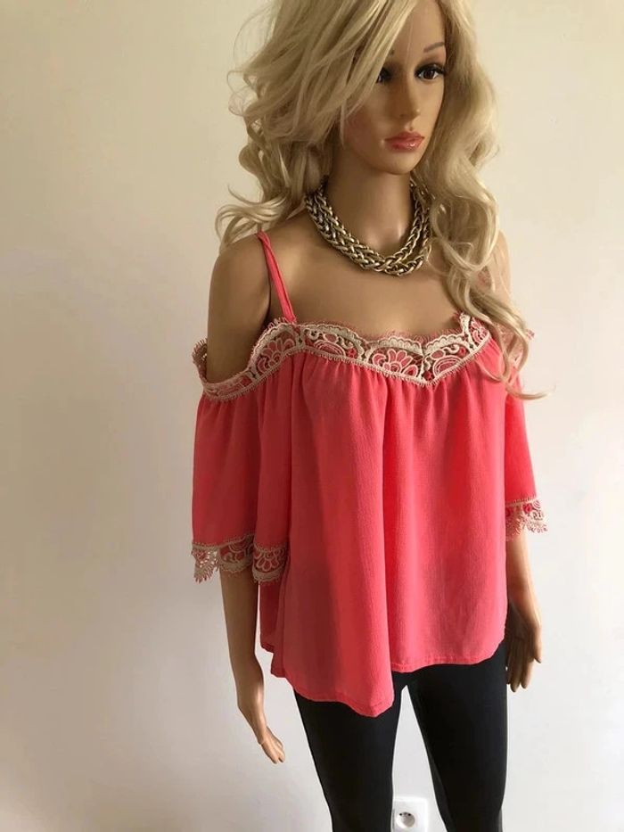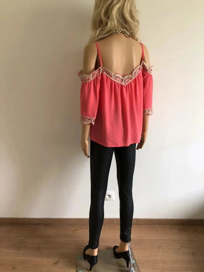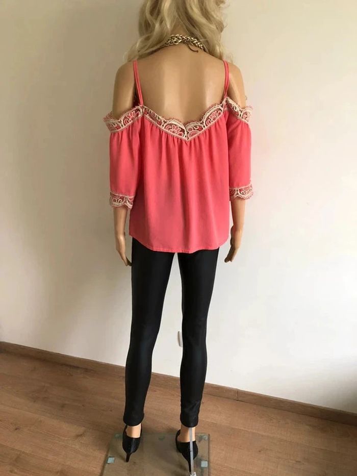 Top rose à épaules dénudées avec dentelle taille unique jamais porté - photo numéro 9