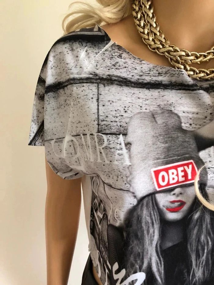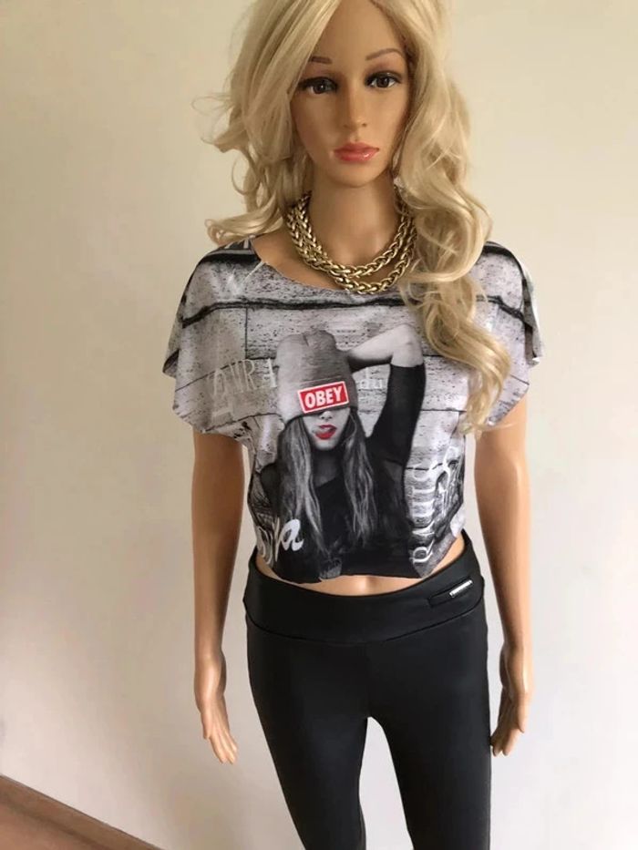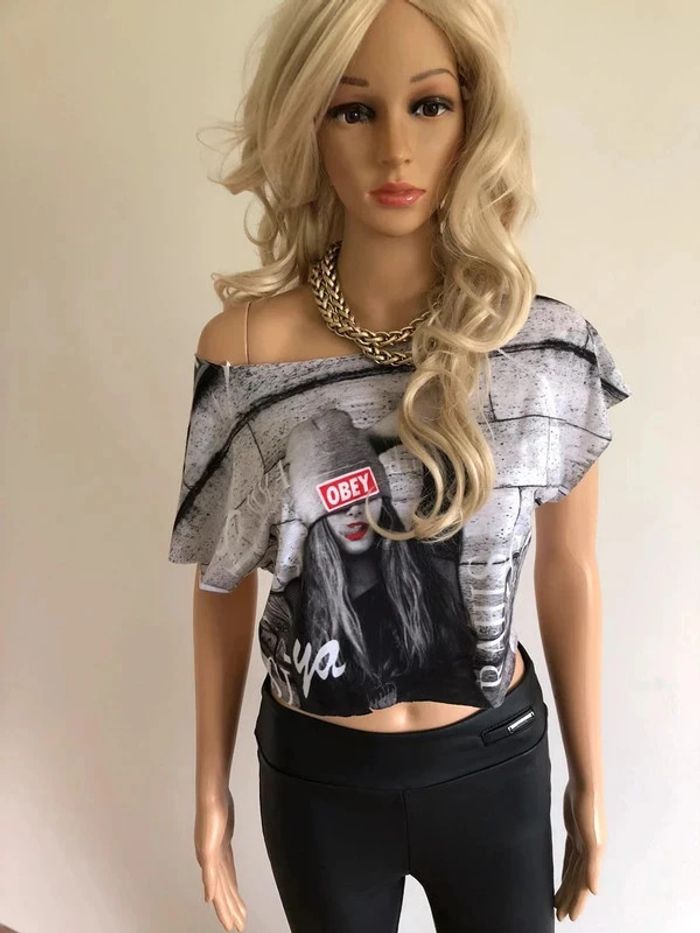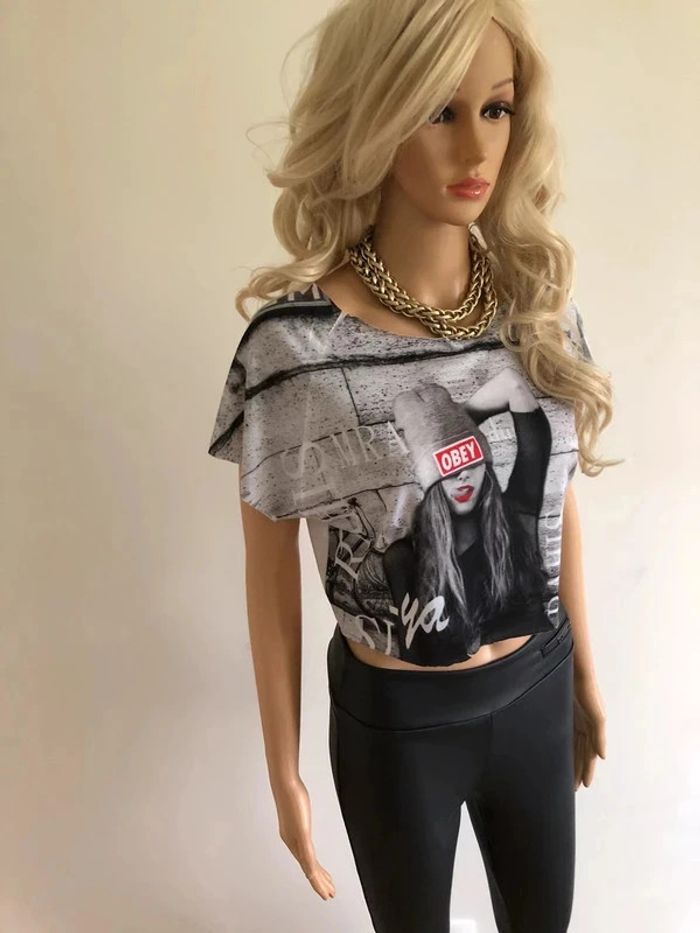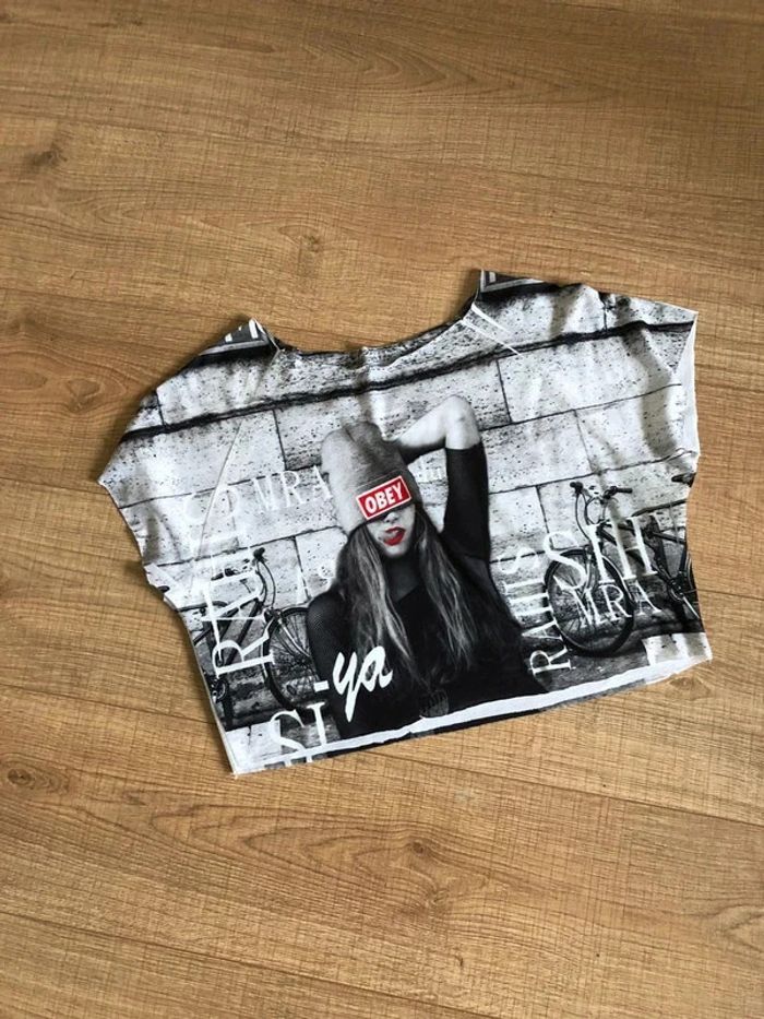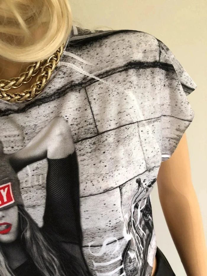 Joli top court imprimé blanc gris et noir, à manches courtes. Taille unique qui convient jusqu’au 38. Jamais porté état neuf. aisselle à aisselle 47 cms longueur depuis épaule 40 cms Le tissu est extensible 95% polyester et 5% elasthanne Le prix reste négociable dans la limite du raisonnable.