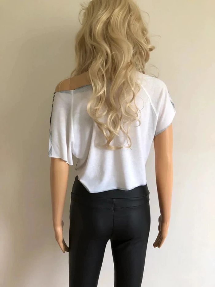 Top court blanc gris et noir à manches courtes taille unique jamais porté - photo numéro 14