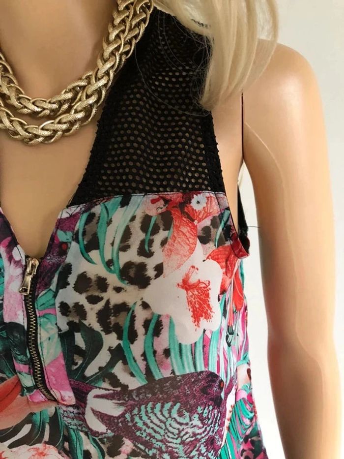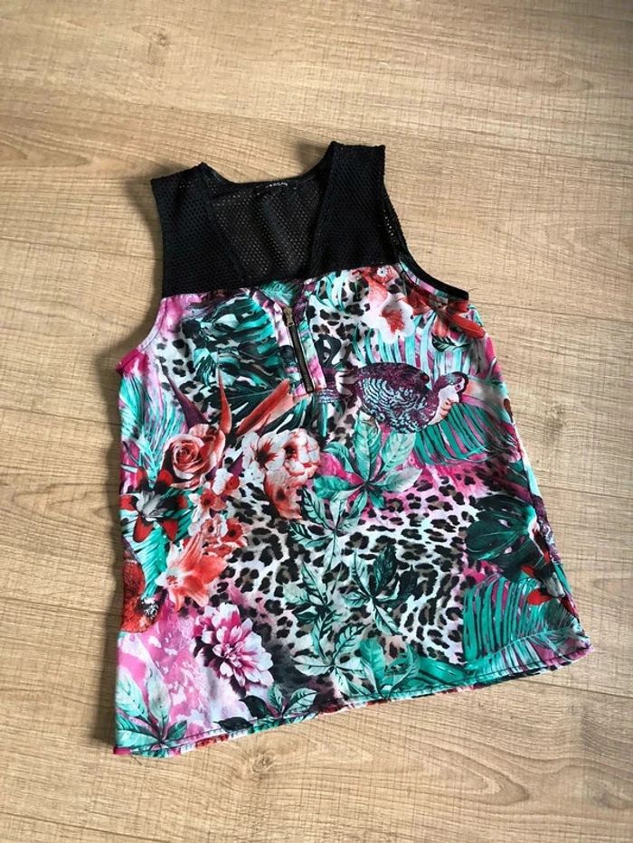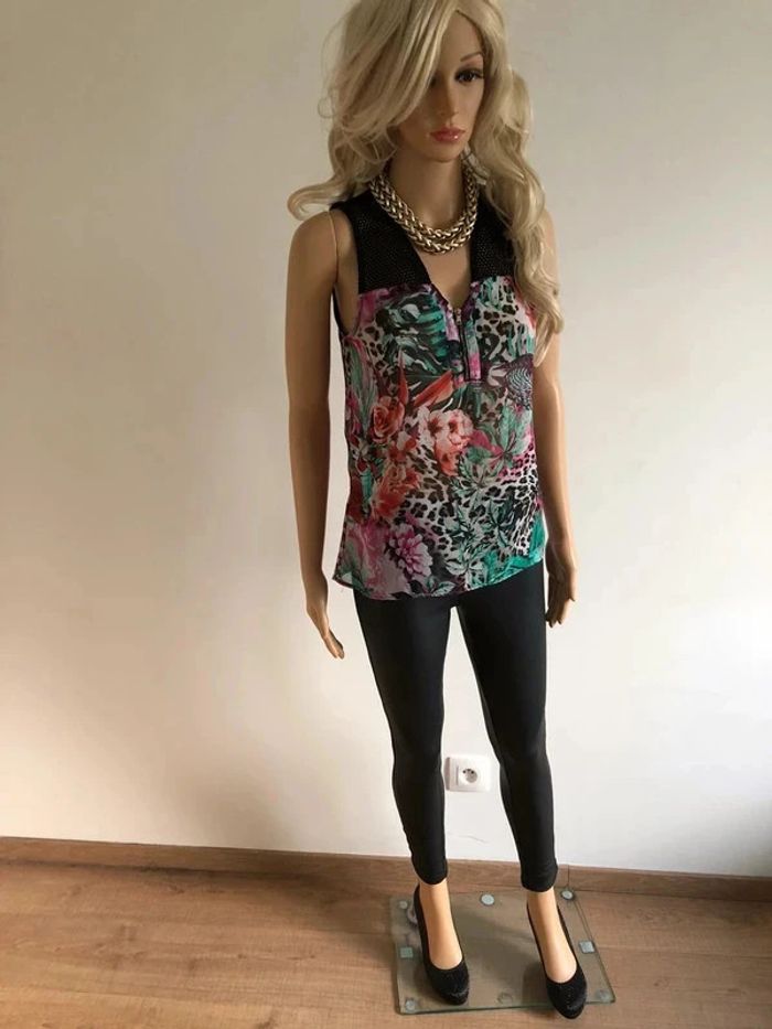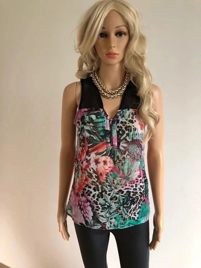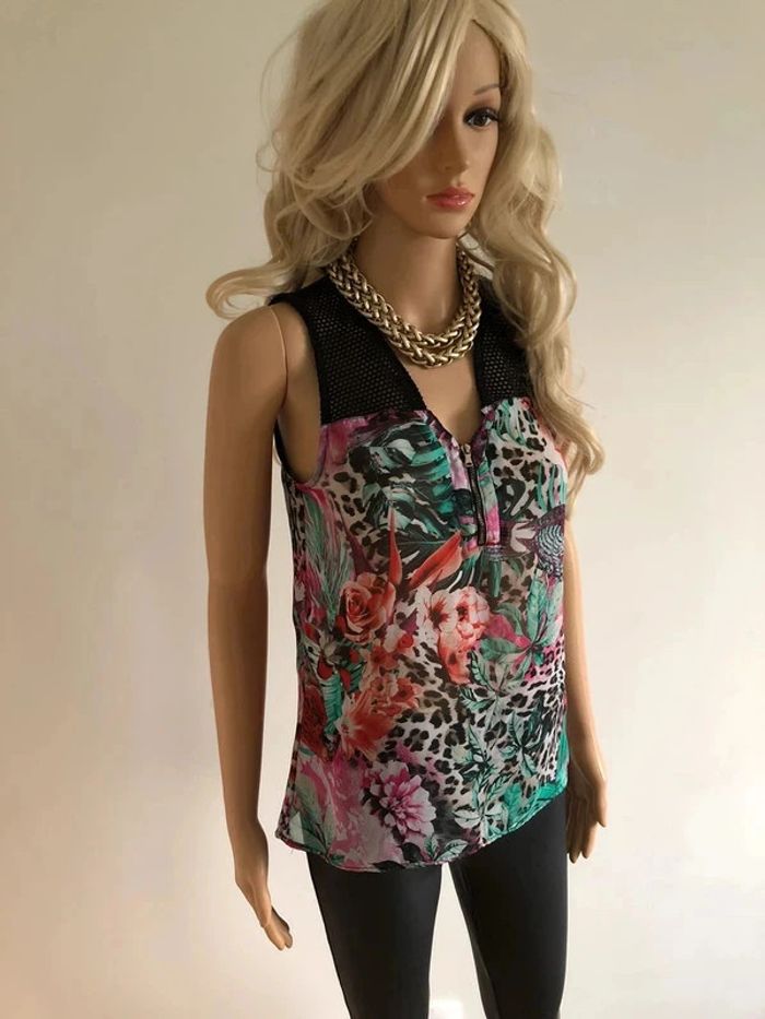 Top noir et imprimé fleuri sans manches Morgan taille 36 TBE - photo numéro 11