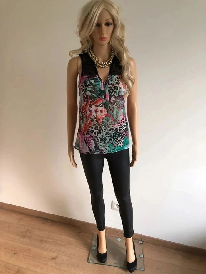 Top noir et imprimé fleuri sans manches Morgan taille 36 TBE - photo numéro 12