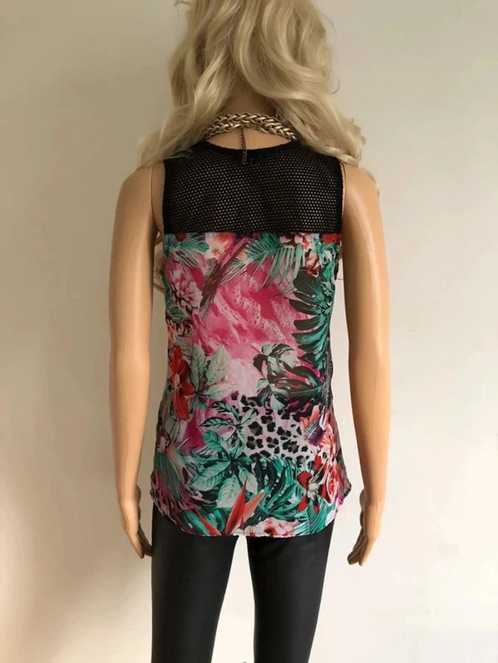 Top noir et imprimé fleuri sans manches Morgan taille 36 TBE - photo numéro 7