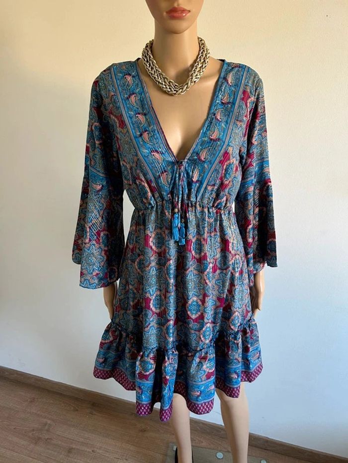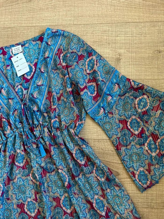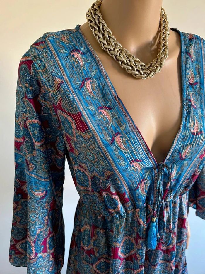 Robe imprimée neuve en soie à manches longues taille unique - photo numéro 3